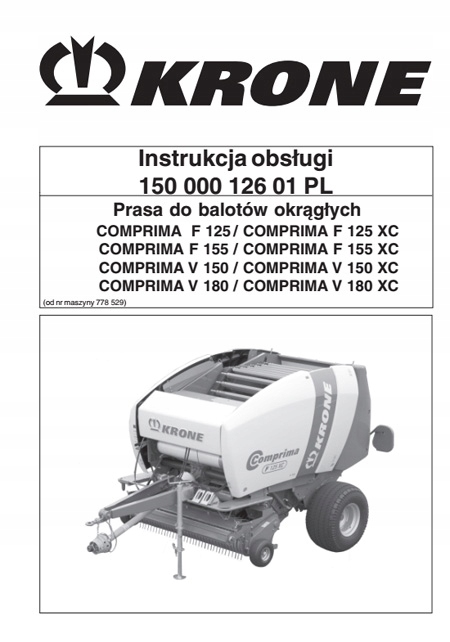 Руководство пользователя рулонного пресс-подборщика Krone COMPRIMA F 125/F 125 XC, COMPRIMA F 155/F 155 XC, COMPRIMA V 150/V 150 XC, COMPRIMA V 180/V 180