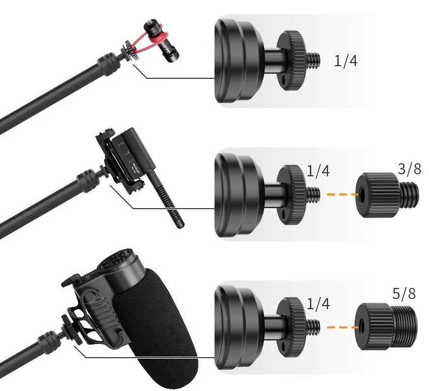 - Каждый держатель заканчивается головка на 360 градусов / резьба 1/4 дюйма.