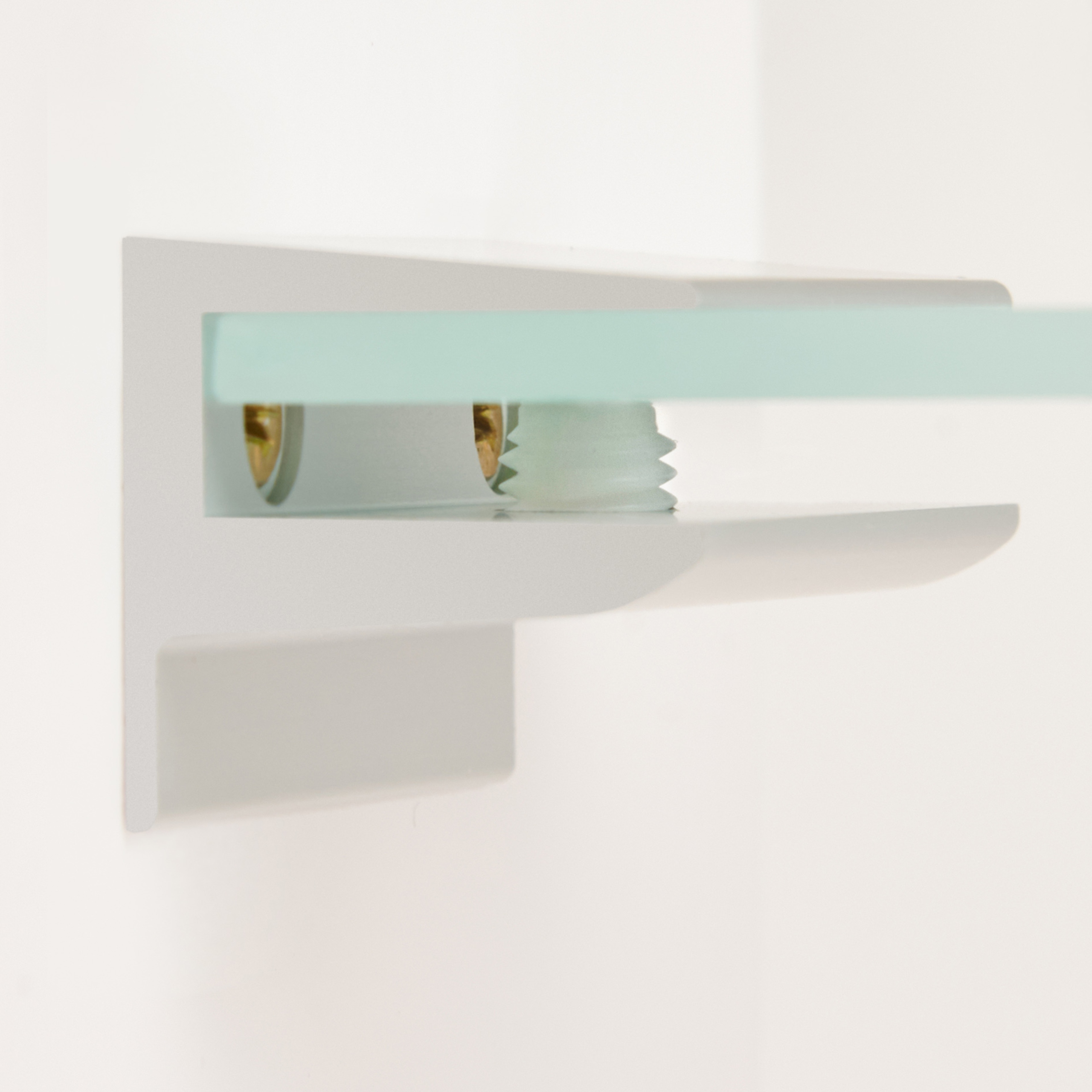 Подстройка под конкретную толщину полки возможна путем затягивания пластикового винта снизу кронштейна. p>