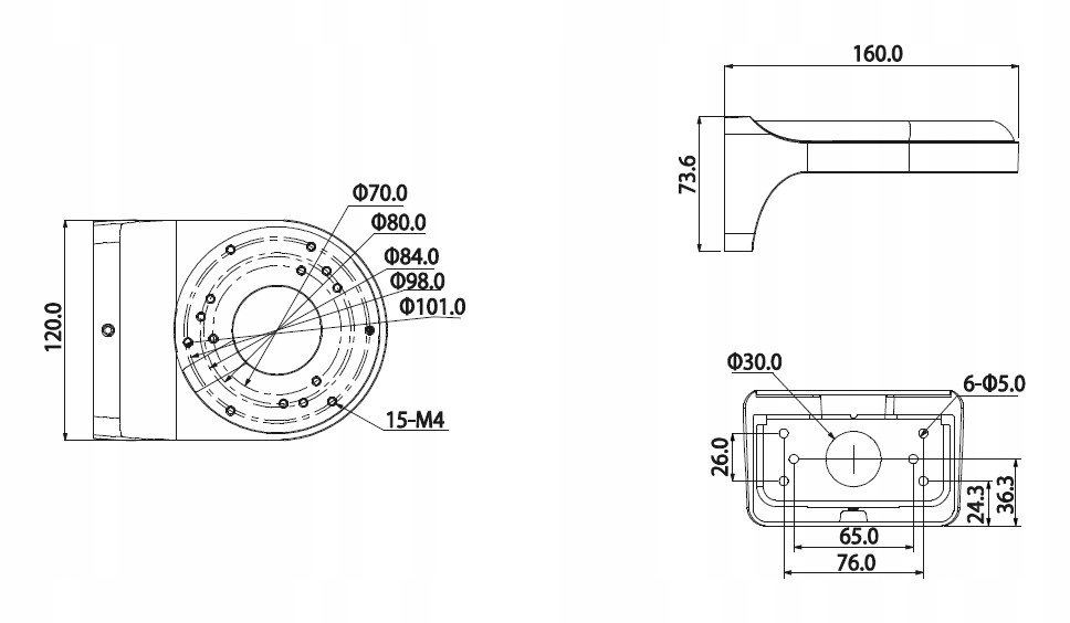 Настенное крепление для купольной камеры BCS-UD1 — предназначено для камер серии BCS-DMIP1000/2000/3000. Материал: алюминий с порошковым покрытием белого цвета + белый пластиковый навес. Загрузка до 1 кг.