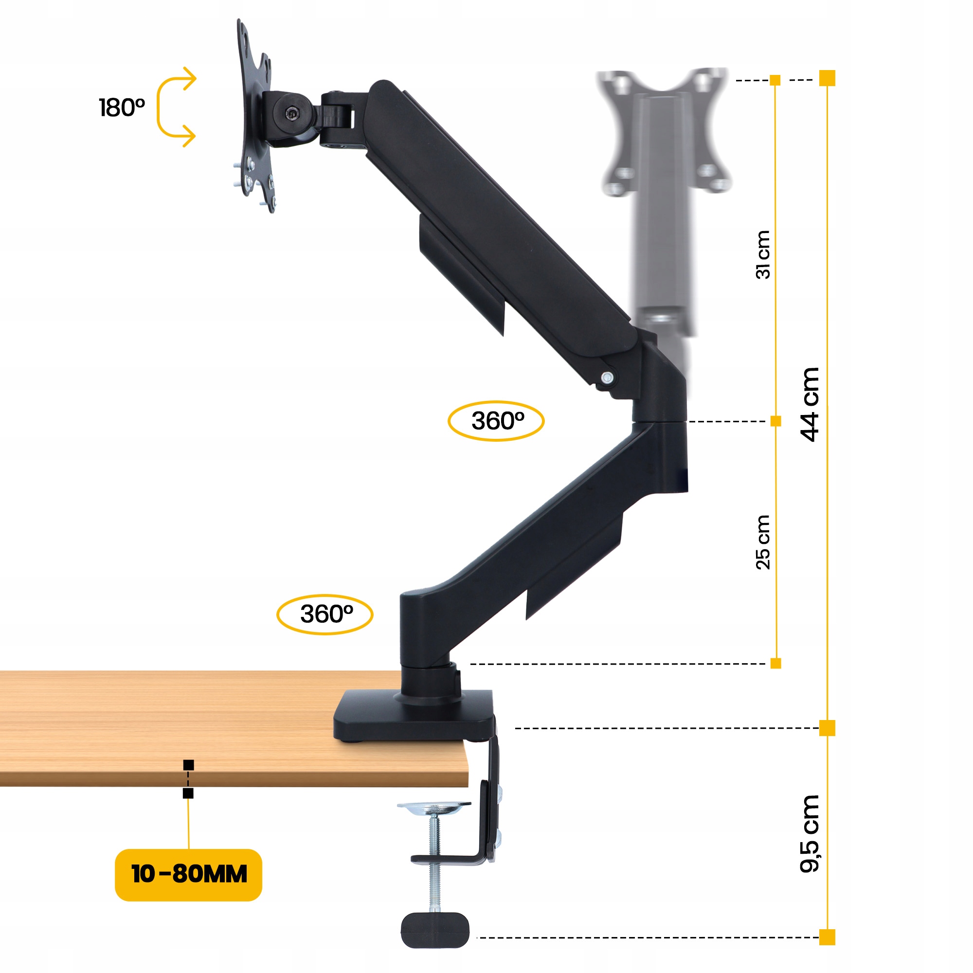 Держатель чрезвычайно универсален и совместим с мониторами различных размеров и марок. Он будет хорошо работать как с компактными экранами для офисной работы, так и с более крупными моделями, используемыми в играх или графическом дизайне. Это идеальное решение для всех, кто ценит эргономику, безопасность и гибкость.