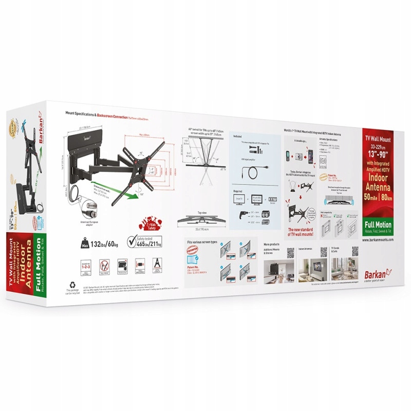 Подвесной кронштейн для телевизора 13–90 дюймов, поворотный, с антенной DVB-T2 25 дБ Barkan