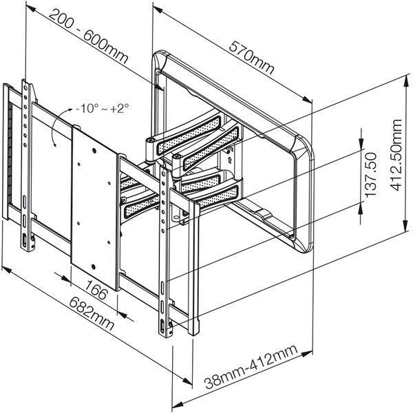 - Расстояние до монитора от стены регулируется: 38 – 412 мм
