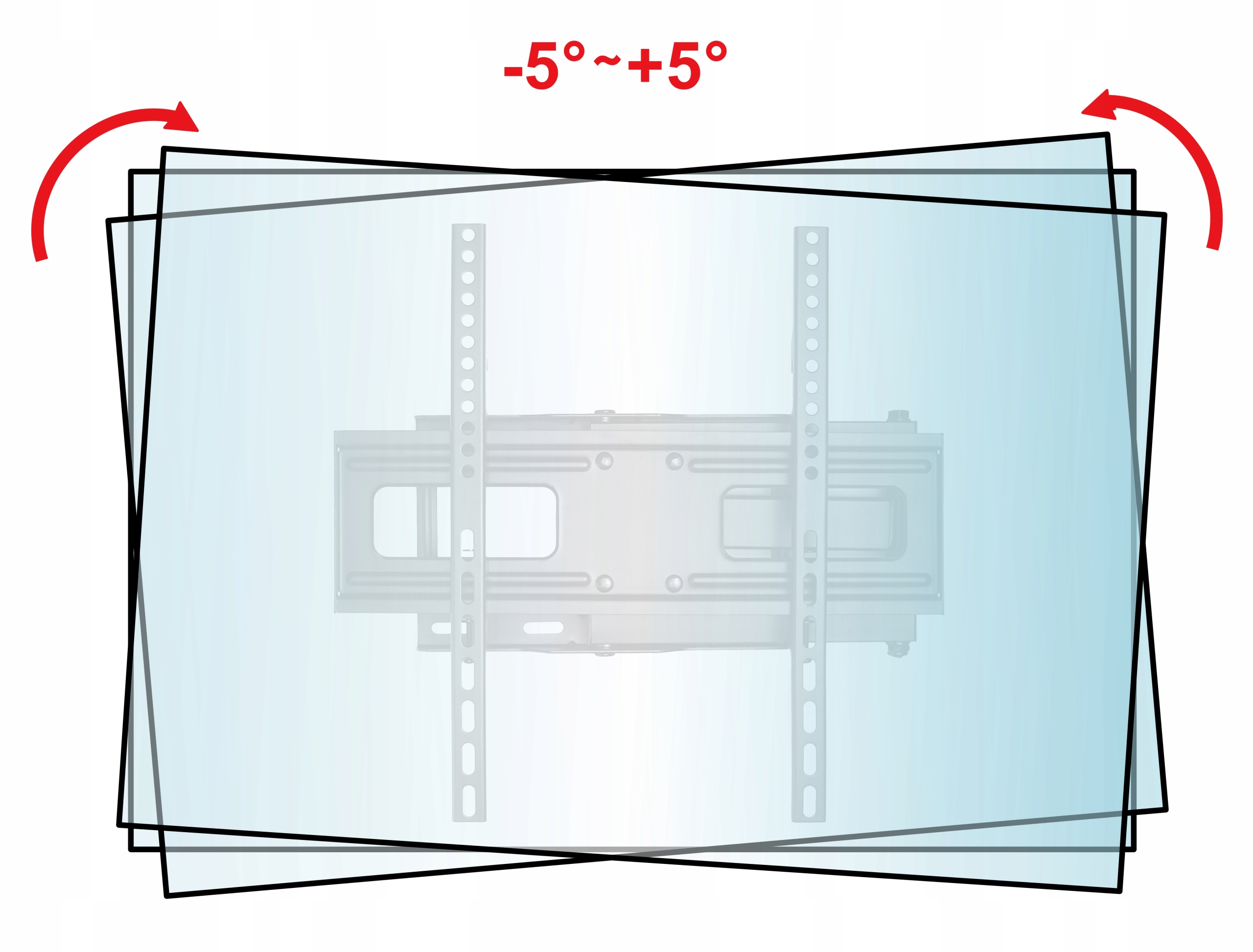 - Держатель позволяет корректировать уровень в диапазоне -5° / +5°, напр. при не очень точном сверлении отверстий в стене или когда под действием веса держатель зависает.
