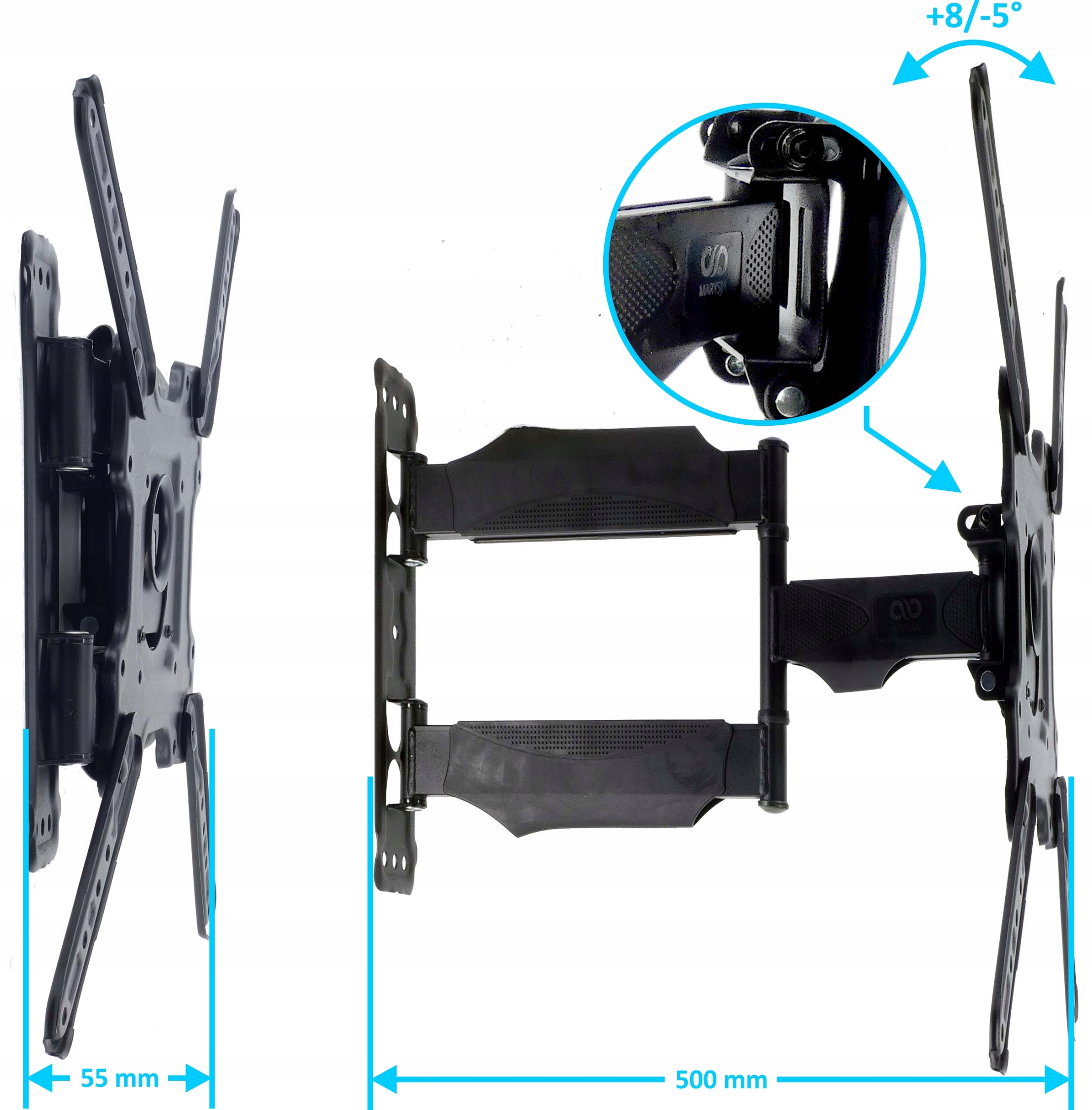 - Расстояние телевизора от стены: 55–500 мм.
