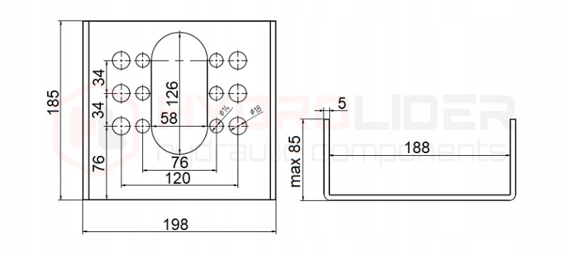 - Количество монтажных отверстий: 4x14mm, 4x18mm
