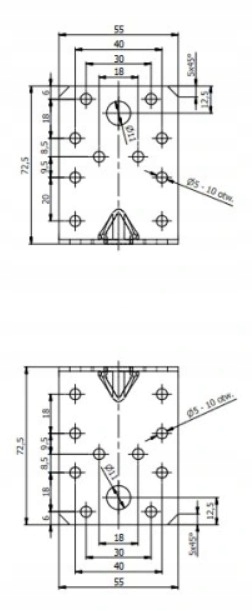 - количество отверстий-12 отверстий ø5мм, 2 отверстия ø10мм ул>