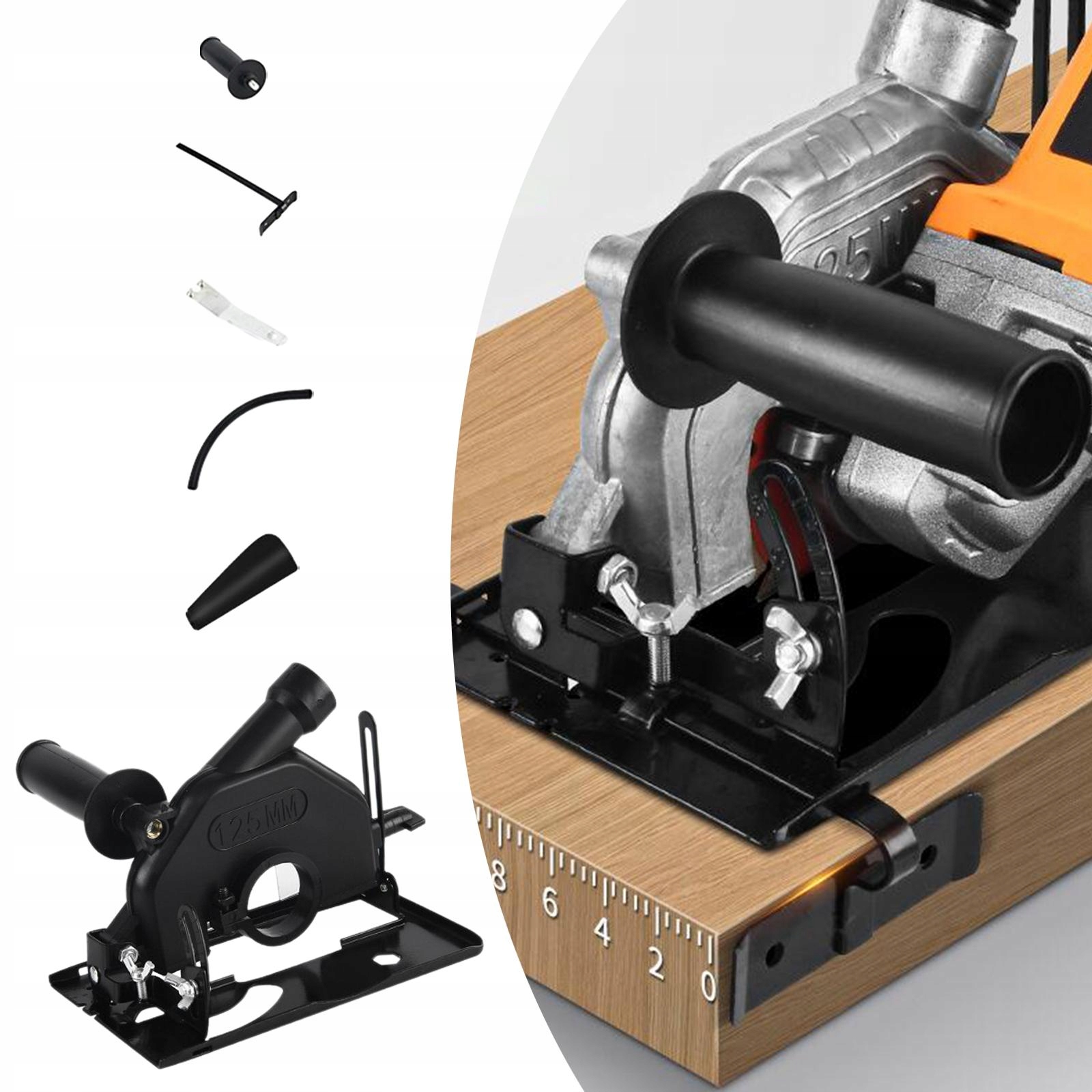 [Широкое применение]: кронштейн для электрической циркулярной пилы подходит для угловых шлифовальных машин типа 100-125 и подходит для пил диаметром до 125 мм (можно использовать все типы угловых шлифовальных машин, доступных на рынке).