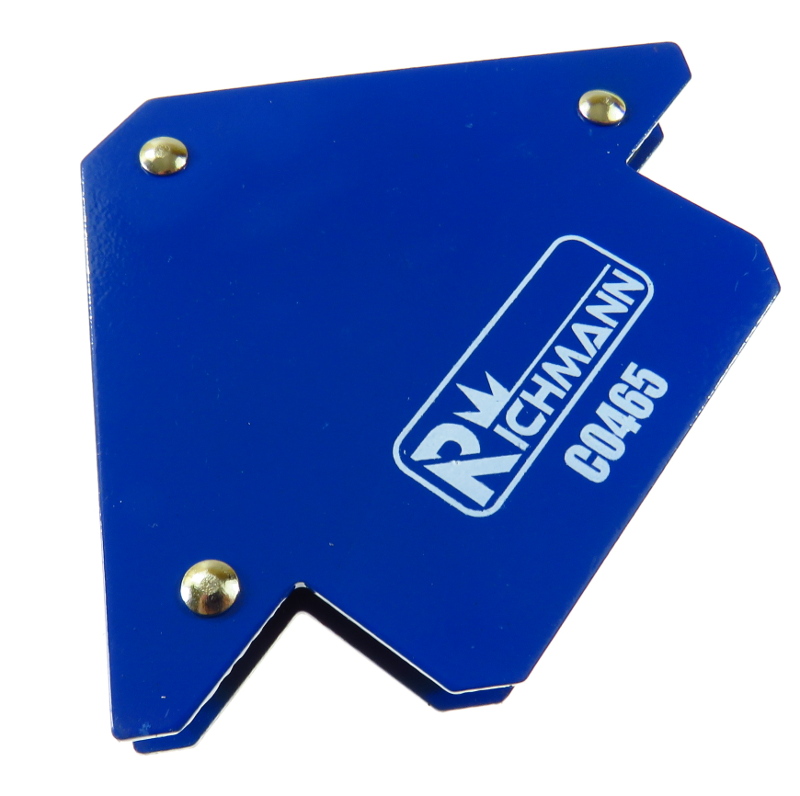Магнитный уголок изготовлен из стального листа и сильных ферритовых магнитов. Предназначен для временного соединения металлических элементов при сварке, сверлении, покраске и т.п., т.е. работ, требующих использования обеих рук или помощи второго работника. Края соединяемых материалов удерживаются магнитами до тех пор, пока они не будут окончательно соединены. Обеспечивает точную работу под следующими углами: 45°/90° и 135°. Грузоподъемность магнита составляет около 12,5 кг. Поверхность корпуса с порошковым покрытием.