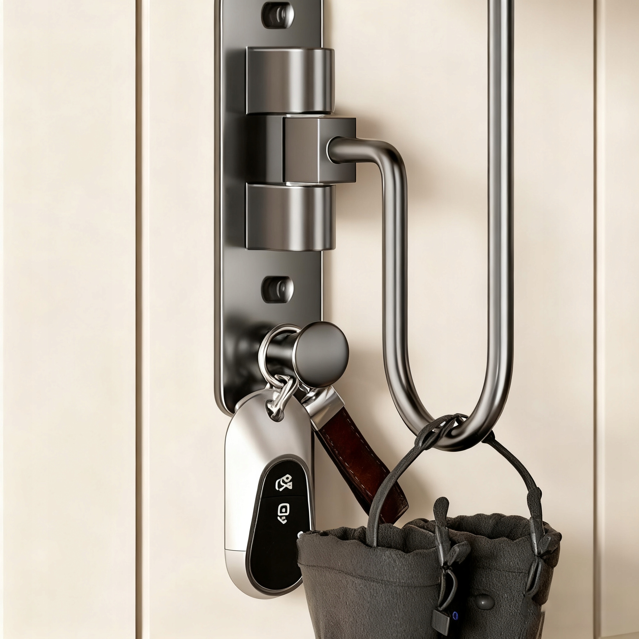 - Держатель для шлема имеет небольшой встроенный крючок снизу для удобного хранения мелких предметов, таких как брелоки и зонтики.