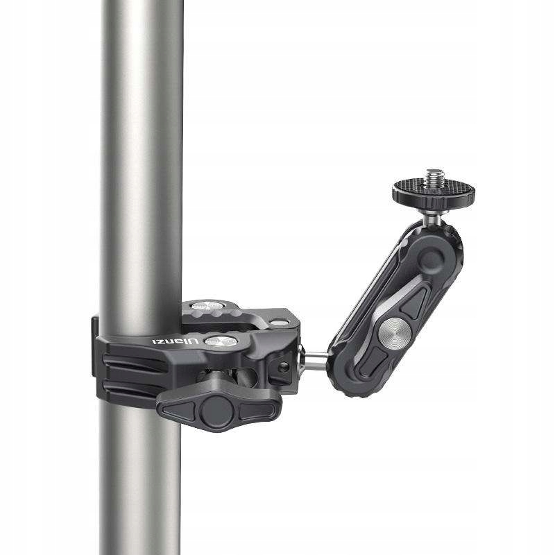 Зажим дает нам множество возможностей крепления в студии и на открытом воздухе. Давление бабочки регулируется и очень сильное, поэтому его можно регулировать для объектов разной толщины, например, столешницы, забора, ветки, трубы, руля, скейтборда и т. д.