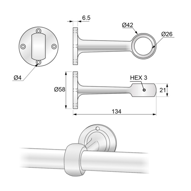 Дистанционный держатель fi 25 для крепления к стене или потолку и встраивания в него трубы диаметром 25мм.