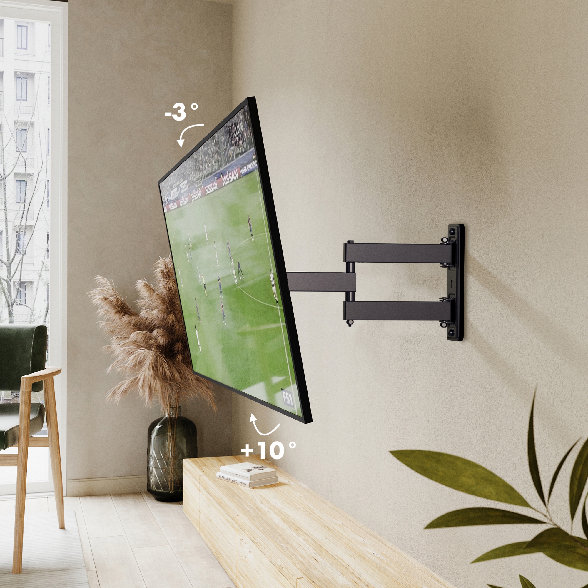 Наше универсальное крепление для телевизора наклоняется от -3 до +10°, предоставляя вам больше возможностей просмотра под наиболее удобный угол для устранения раздражающих бликов и снижения нагрузки на шею и глаза.