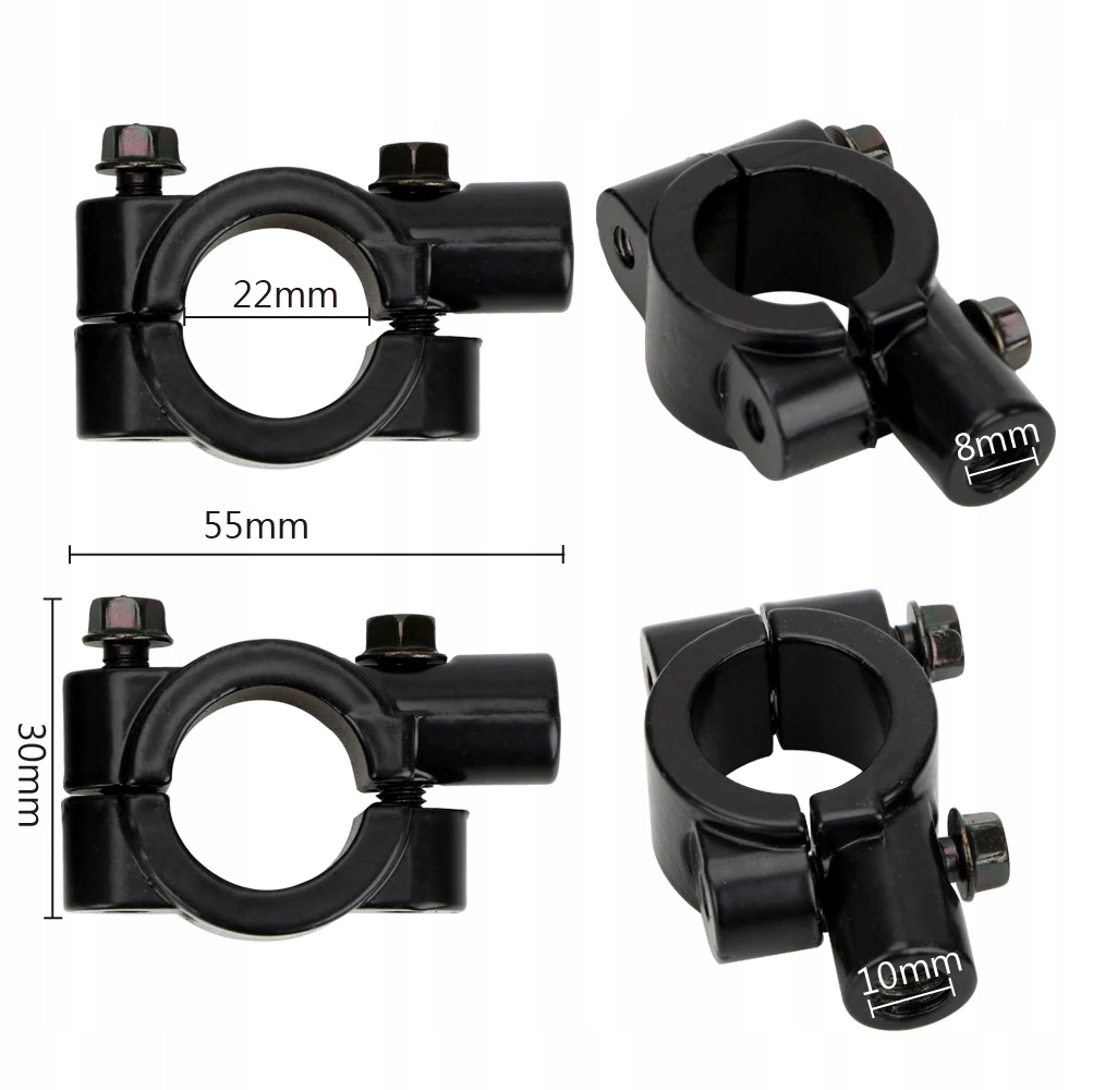 Универсальный металлический держатель для крепления зеркал. Металлический зажим на руль диаметром 22 мм для зеркала с правой резьбой 8 или 10 мм. Его можно использовать в мотоциклах, мотоциклах, квадроциклах, скутерах и т. д.