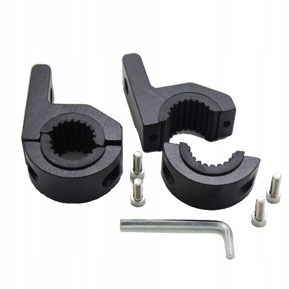 Хомутик с винтами с внутренним шестигранником и съемной резиновой вставкой позволяет крепить держатель на трубу диаметром 22-32 мм.
