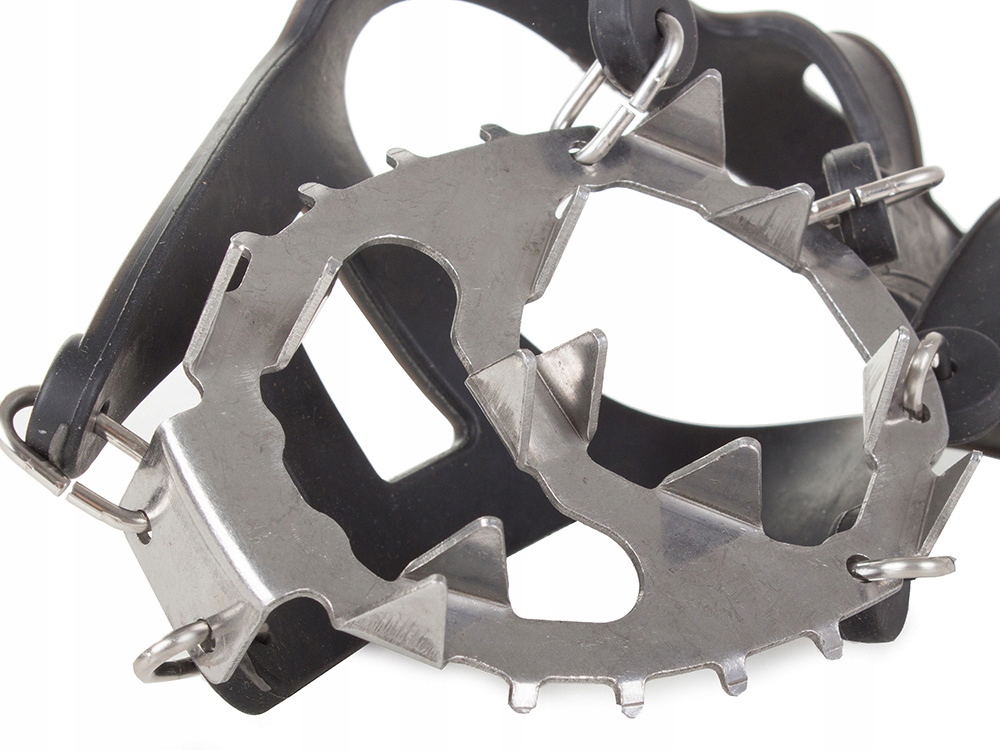 ✅Стальные зубцы на всей подошвесоединены сталью кольца и резиновый ободок обуви. Эластичная лента легко натягивается на обувь. Захваты хорошо держат обувь и не соскальзывают.