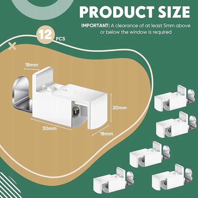 ✨ В одном пакете вы найдете до 12 полных зажимных кронштейнов. Этой суммы достаточно, чтобы установить складки в нескольких окнах или служить предложением для будущего.