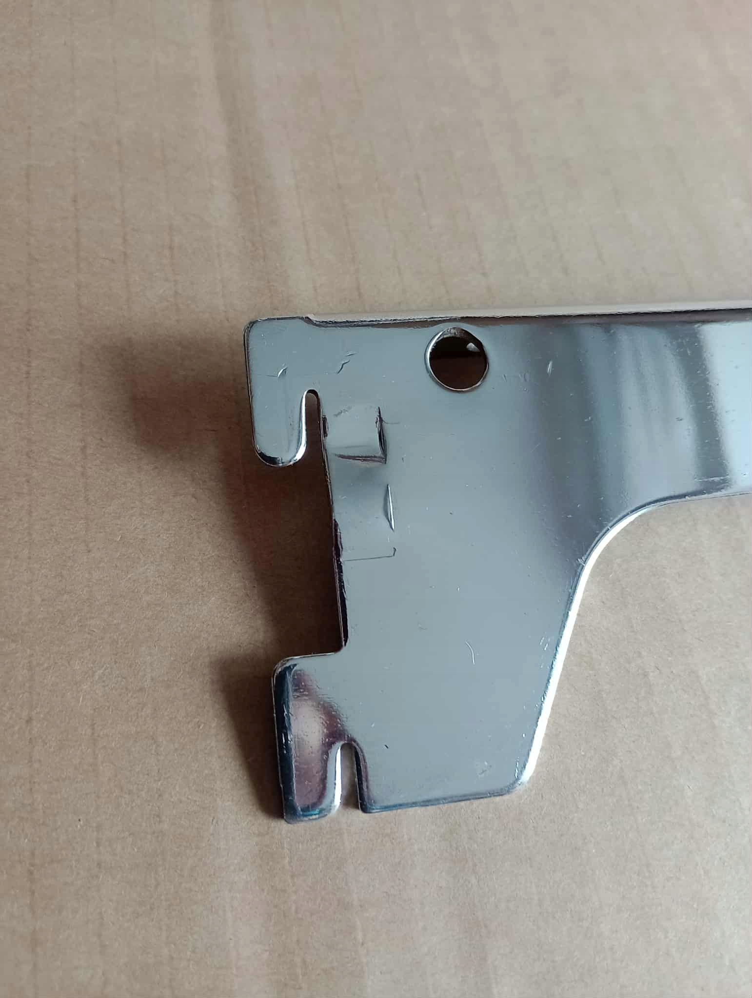 - Кронштейн на конце имеет «носик» - подходит для крепления стеклянных полок.
