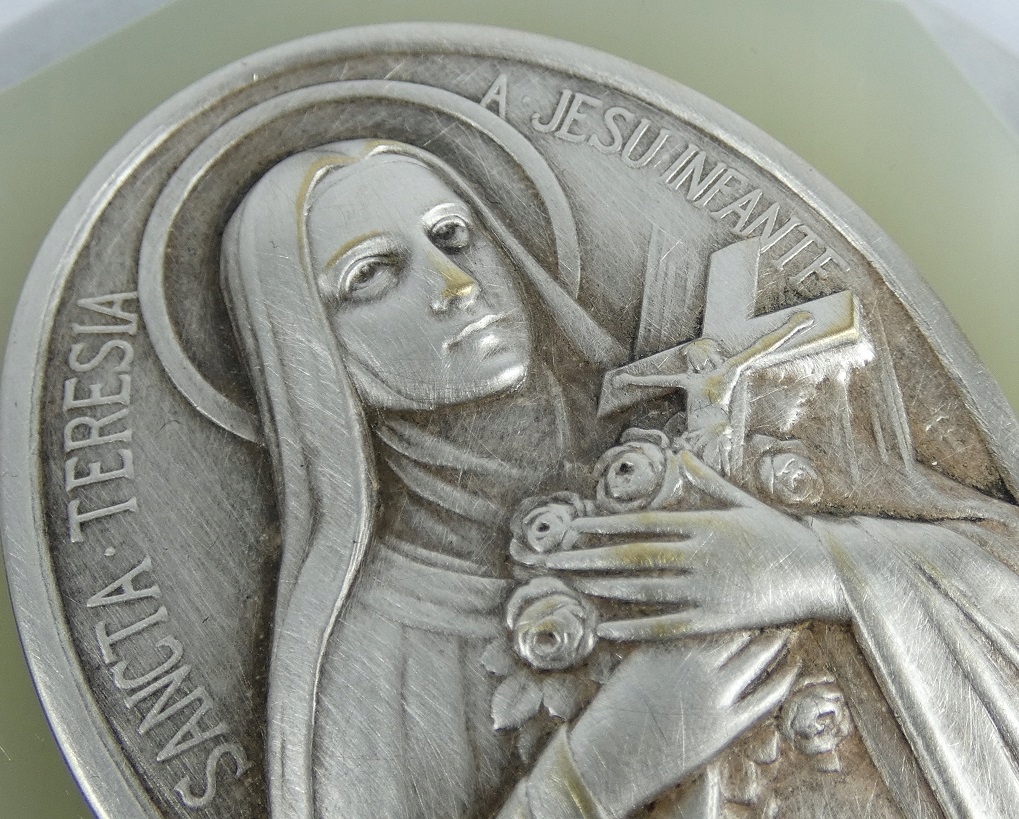 Изображение святого. Тереза, посеребренная латунь, подпись.