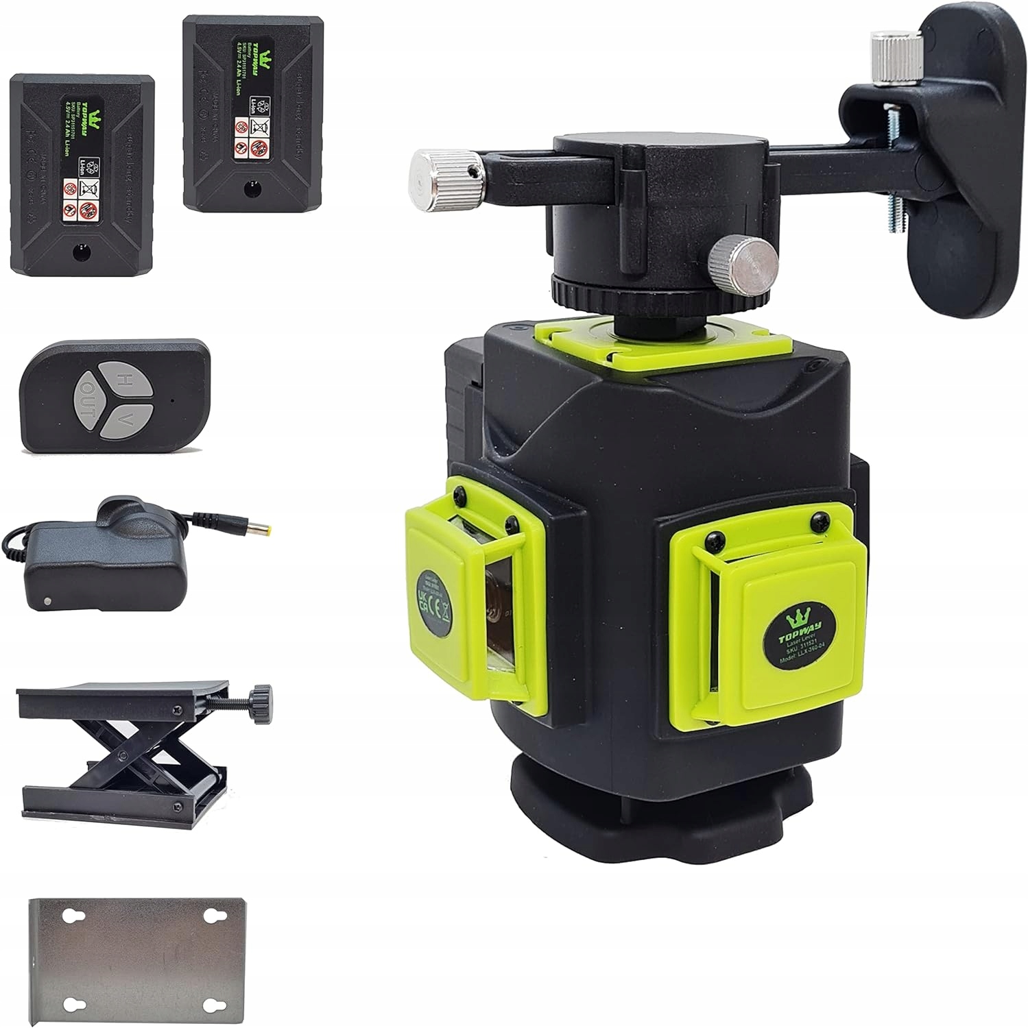3D-лазерный уровень TOPWAY12 линий, 3 x 360 градусов, самовыравнивающийся лазерный инструмент с зеленой перекрестной линией для точной настройки укладки напольной плитки, для внутренних и наружных работ, 2 Батарейки в комплекте 311521