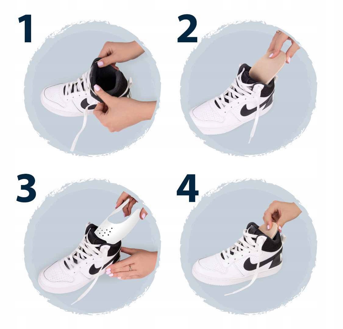 размер: l в половине районы, чем нога . В более жестких туфлях, адаптированных к ноге, не может быть места для размещения жесткости. В таких туфлях, после вставки жесткости, мы будем чувствовать дискомфорт.