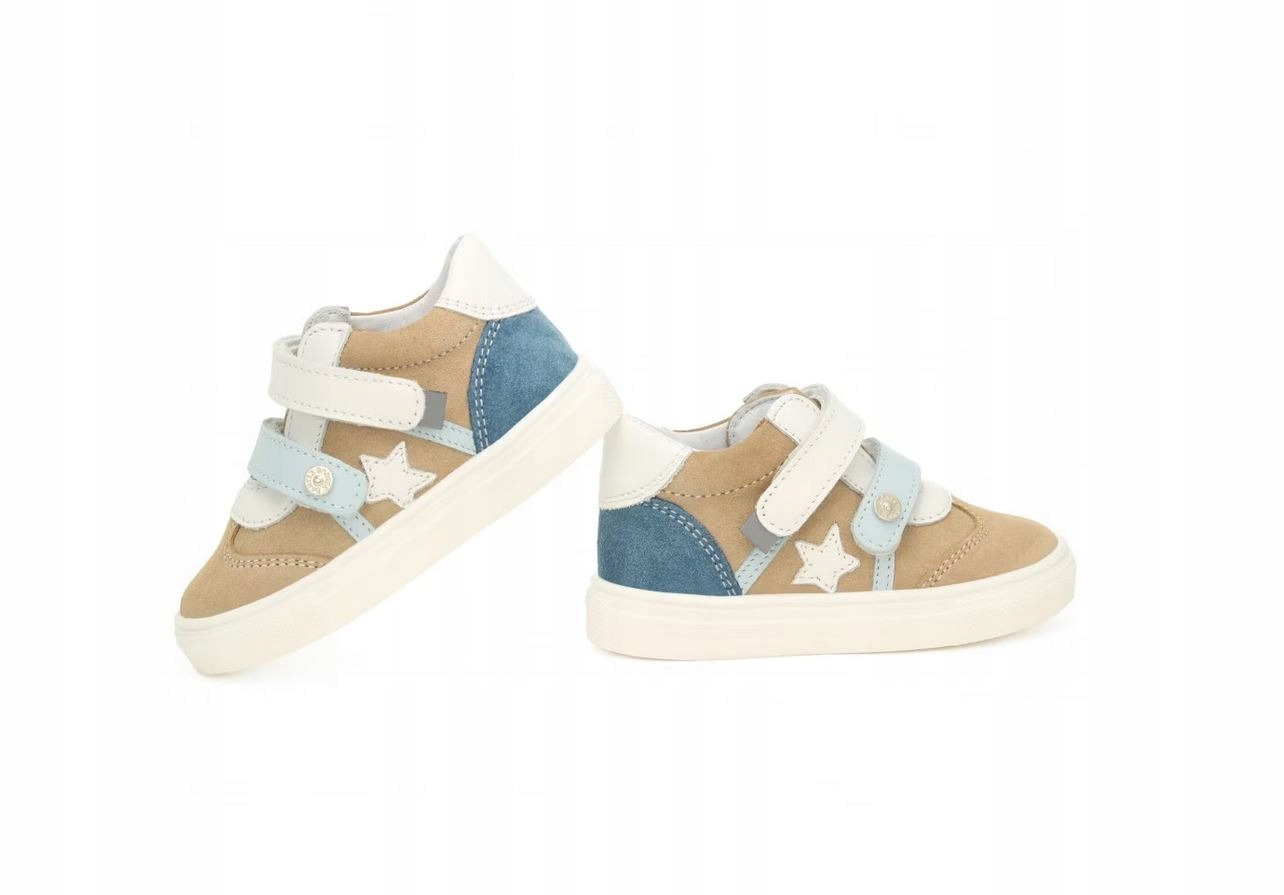 Туфли BARTEK, бежево-синие. Весенне-осенняя обувь для самых маленьких покупателей, маленьких странников, искателей, подходящая для длительных прогулок, походов, игр на природе даже в быстро наступающую осеннюю темноту, благодаря светоотражающим элементам, повышающим заметность и безопасность ребенка.