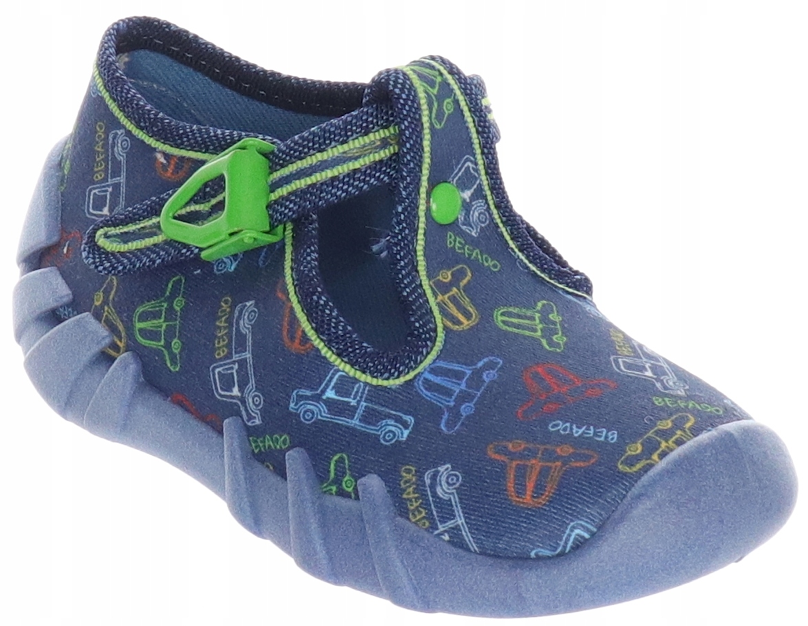 Befado Shoes из линии Speedy - идеальный выбор для малышей, которые делают свои первые шаги. За первые четыре года жизни ноги ребенка интенсивно развиваются , поэтому правая обувь так важна. Скоростная модель - это легкая обувь из воздушного хлопка , которая адаптируется к форме стопы и обеспечивает ношение комфорта. дышащая подошва заботится о хорошей вентиляции, и широкие кончики позволяют пальцам свободного движения. Кроме того, более высокий каблук стабилизирует ногу , поддерживая ее надлежащее развитие.