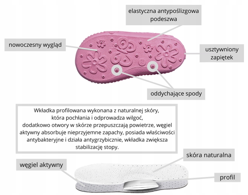 Детские кроссовки Viggamiа-ля сандалии серого цвета с мраморным узором и розовой окантовкой, придающие всей вещи девичий характер. Они установлены на гибкую нескользящую подошву, обеспечивающую безопасность во время игры. Кроме того, подошвы имеют специальные отверстия для обеспечения должного притока воздуха, что существенно влияет на комфорт во время использования. Внутри имеется профилированная кожаная вставка, обеспечивающая правильное положение и правильное развитие стопы ребенка. Данная модель застегивается на липучку, что позволяет ребенку самостоятельно обуваться и предотвращает соскальзывание тапочек с ноги. Тапочки Viggami очень легкие и удобные, идеальны для детского сада или повседневного использования, отличное решение в летний сезон.