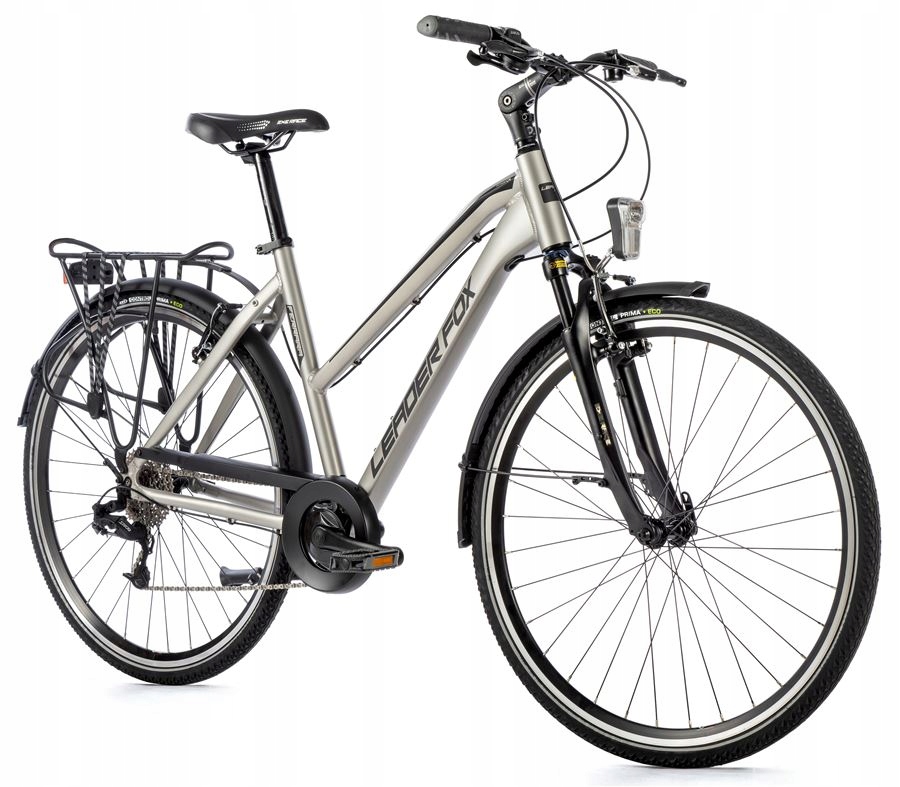 Велосипед LEADER FOX FERRARA LADY — удобный женский трекинговый велосипед, построенный на легкой алюминиевой раме с низкой подножкой для удобства посадки. и без велосипеда, велосипед полностью оборудован (крылья, багажник, подножка, фары, звонок). Благодаря переднему амортизатору велосипед значительно повышает комфорт, поглощая все неровности легкой местности. Трекинговые велосипеды подходят для езды по городу, а также для поездок и длительных маршрутов.