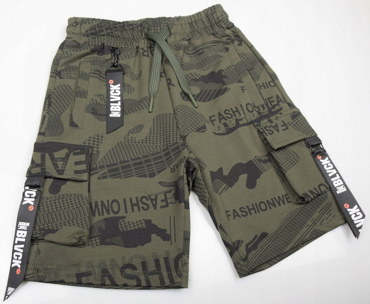 KRÓTKIE SPODNIE WB-3207-8 SPODENKI DRESOWE 4 KIESZONKI MORO 122/128