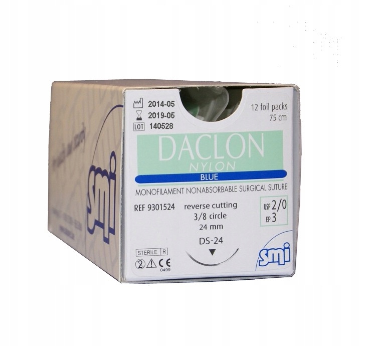 Даклон Нейлон синий с круглой иглой (1/2 круга), 12 пакетиков HR 30 мм USP: 0, 12 пакетиков