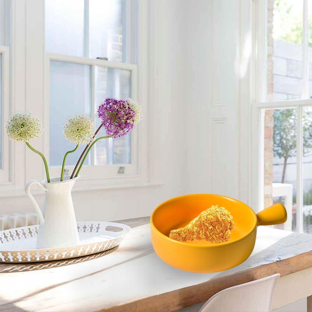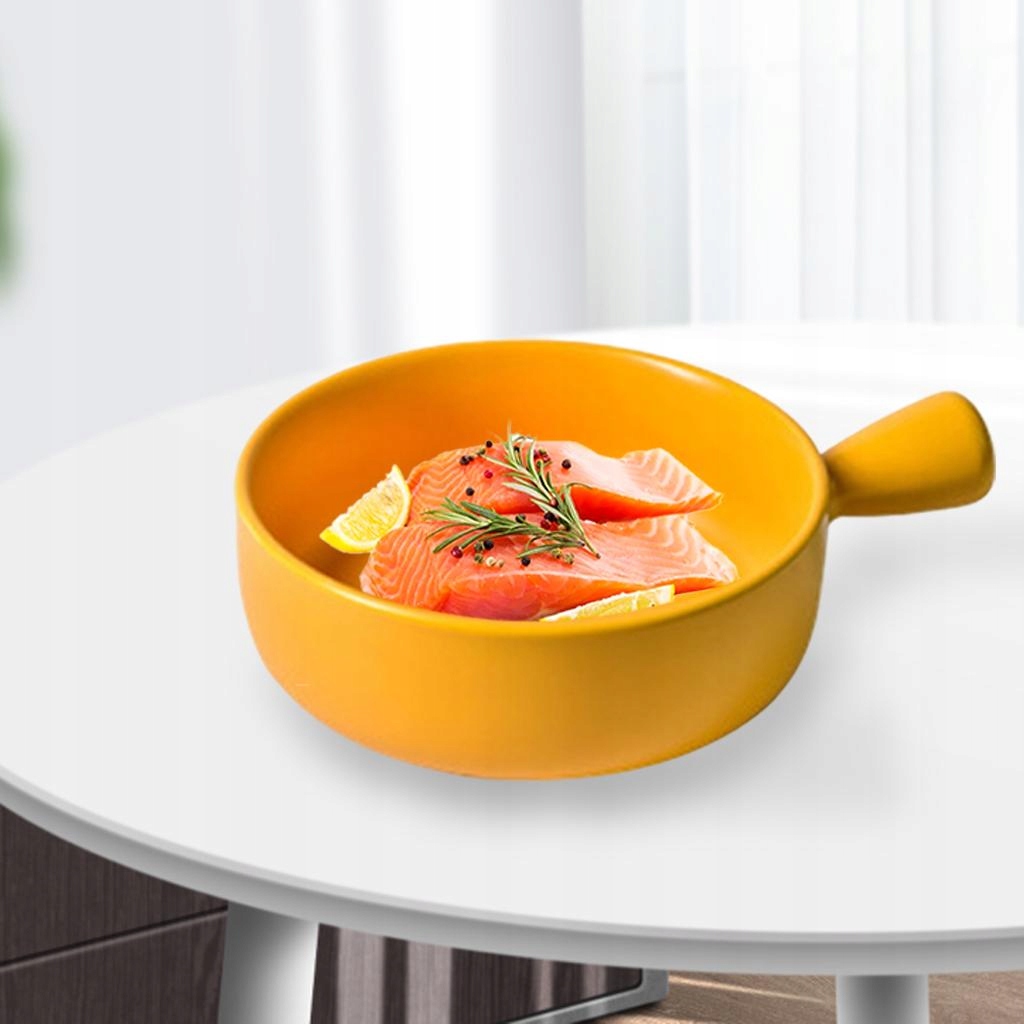 Кругла керамічна миска для супу, деко для запікання рису з локшиною, форма для випікання жовтого кольору