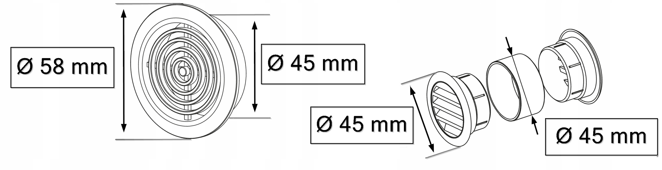 КРУГЛАЯ ВЕНТИЛЯЦИОННАЯ РЕШЕТКА МИНИ 45ММ 2 ШТ