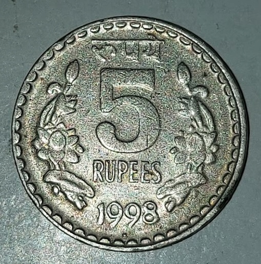 Кругла обігова монета 5 індійських рупій 1998 року