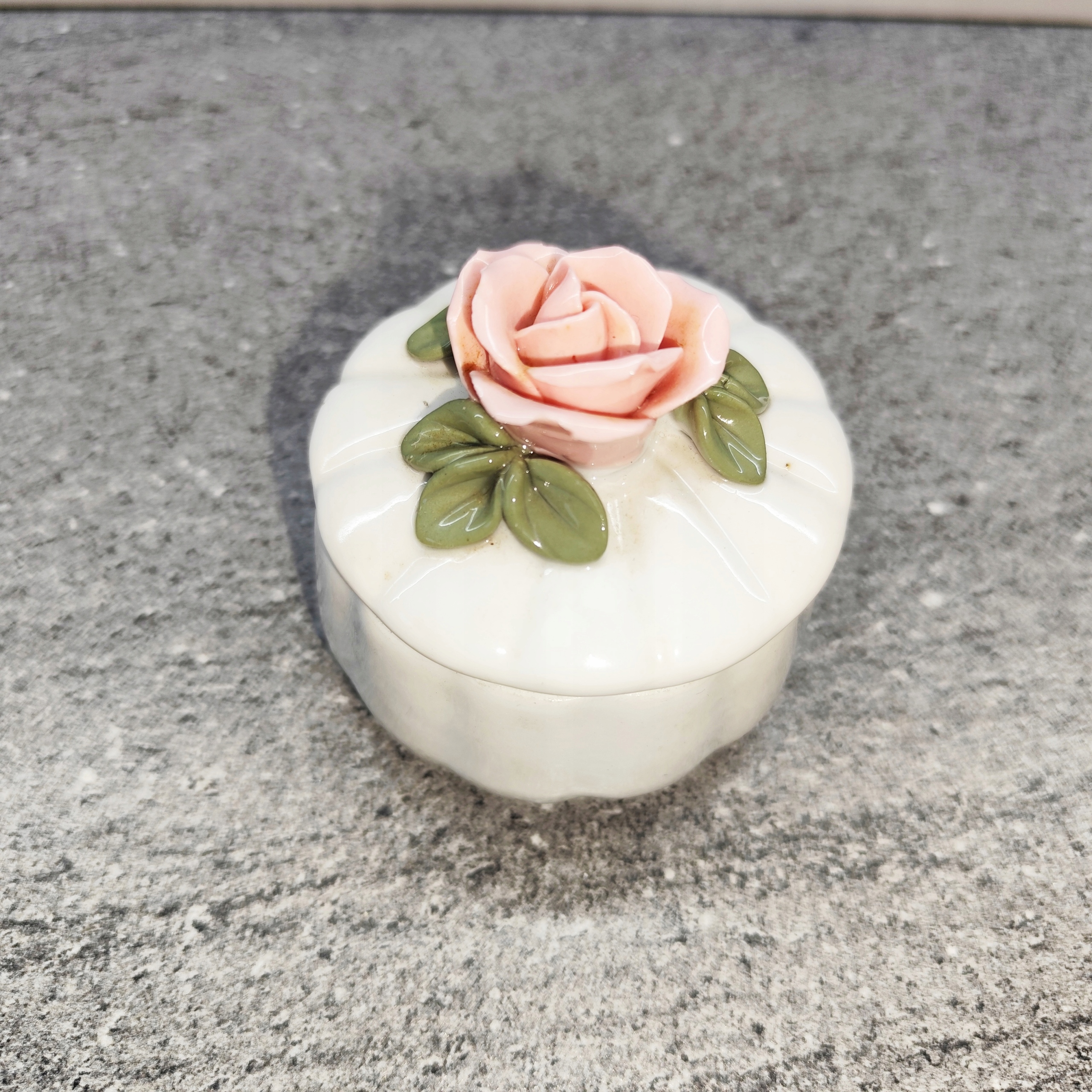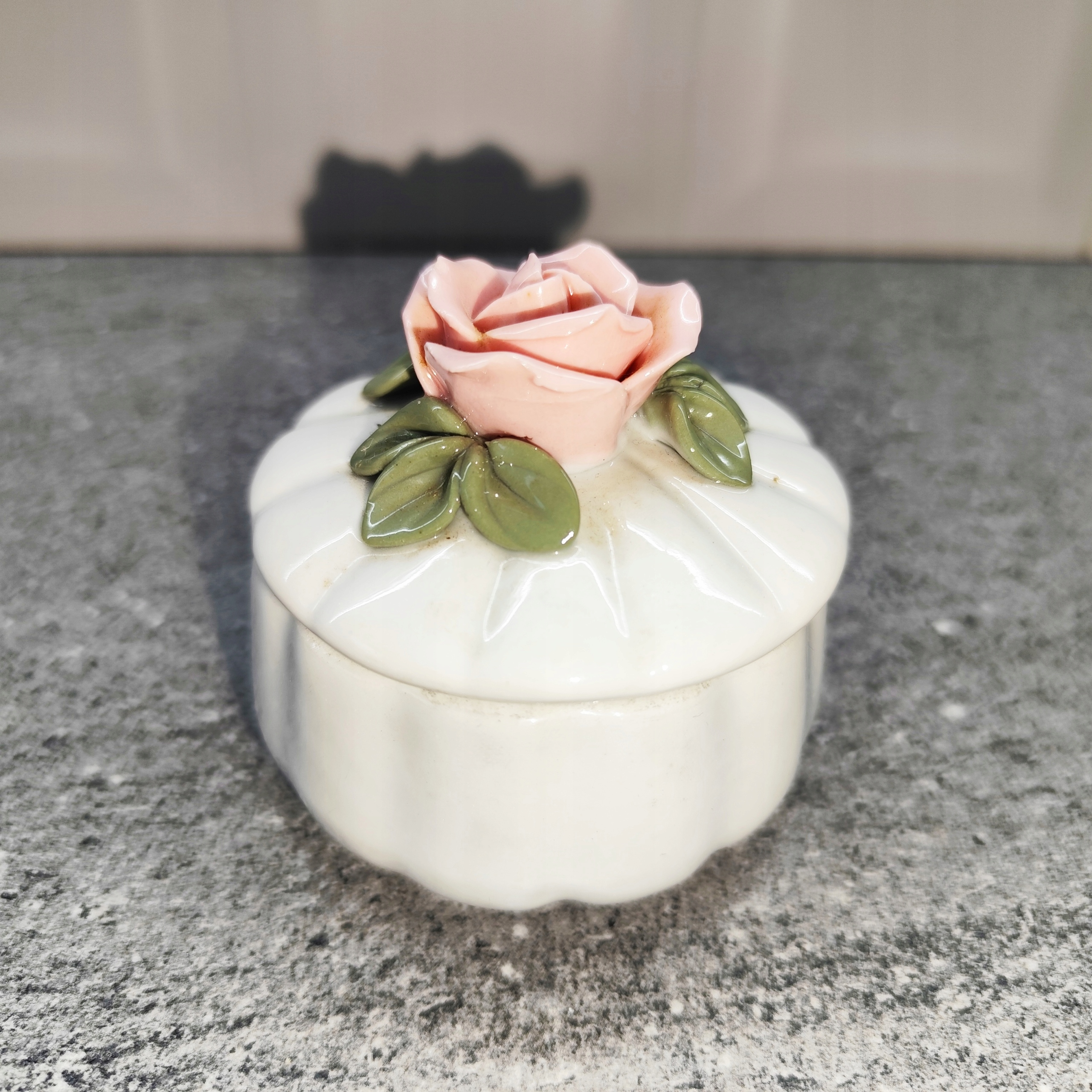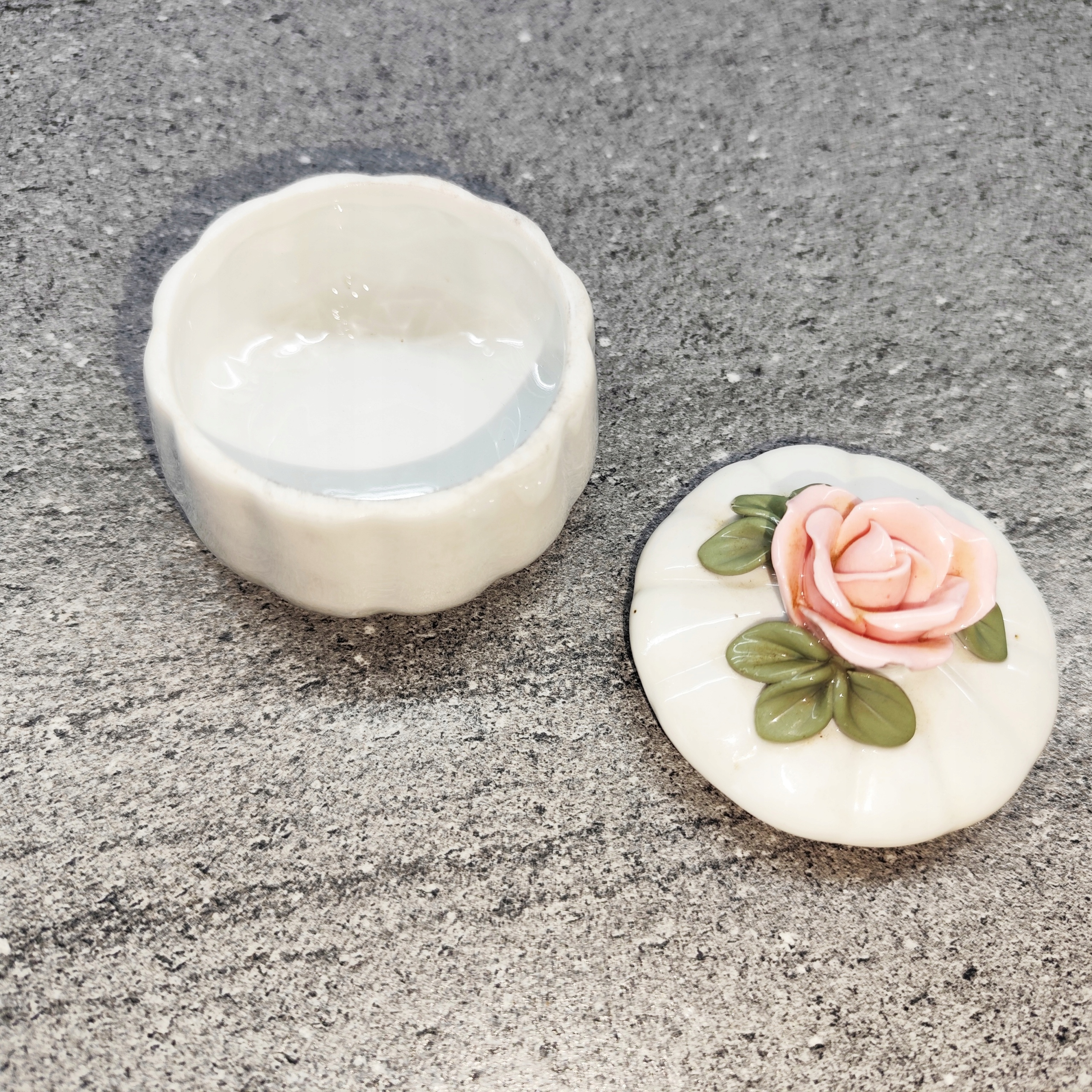 Круглая фарфоровая шкатулка с розой на крышке, старинная фарфоровая шкатулка.