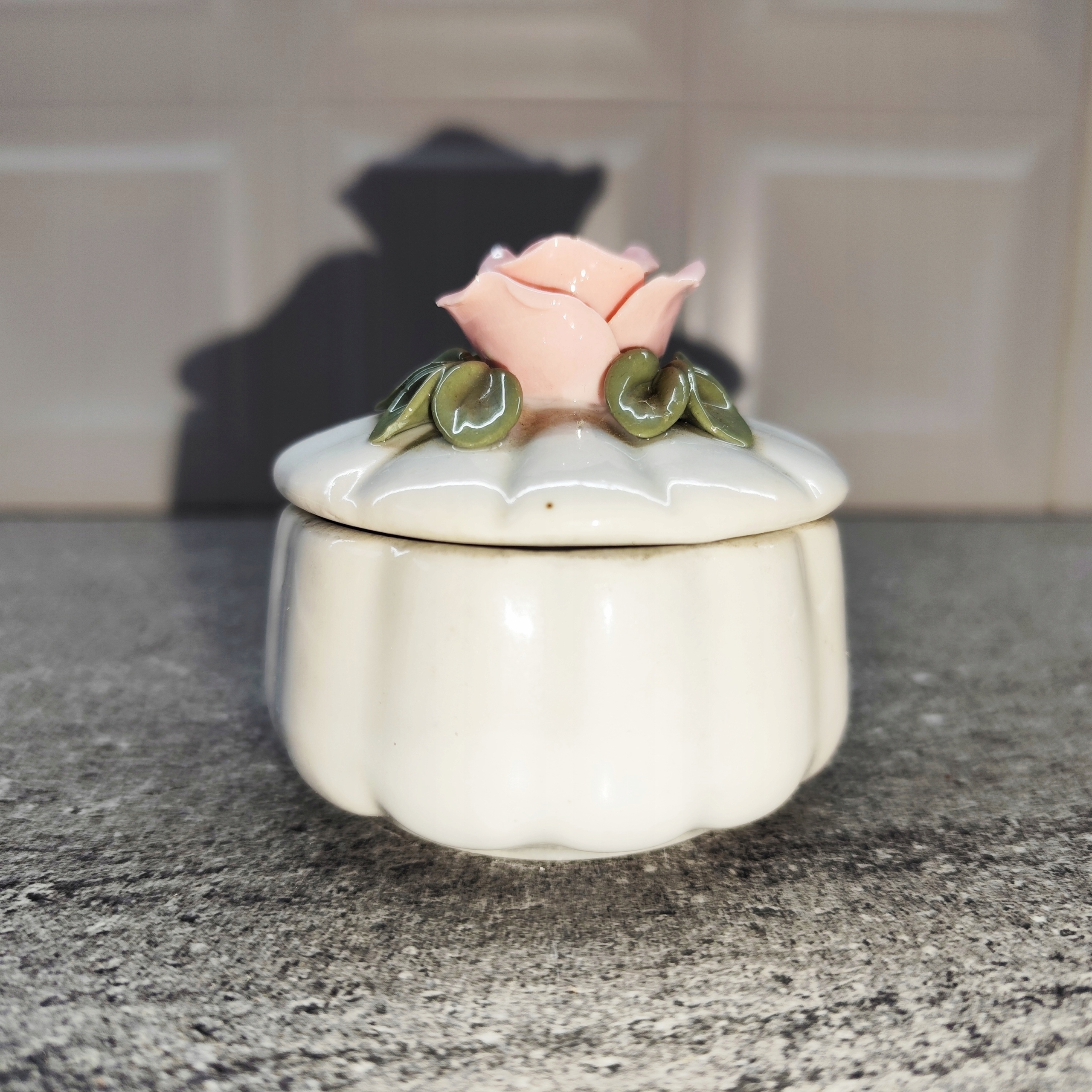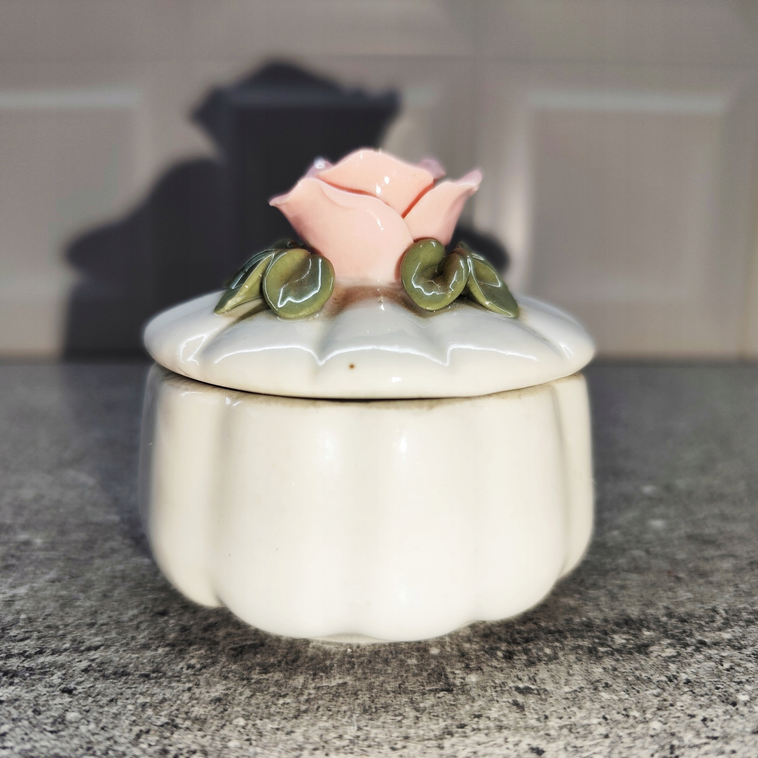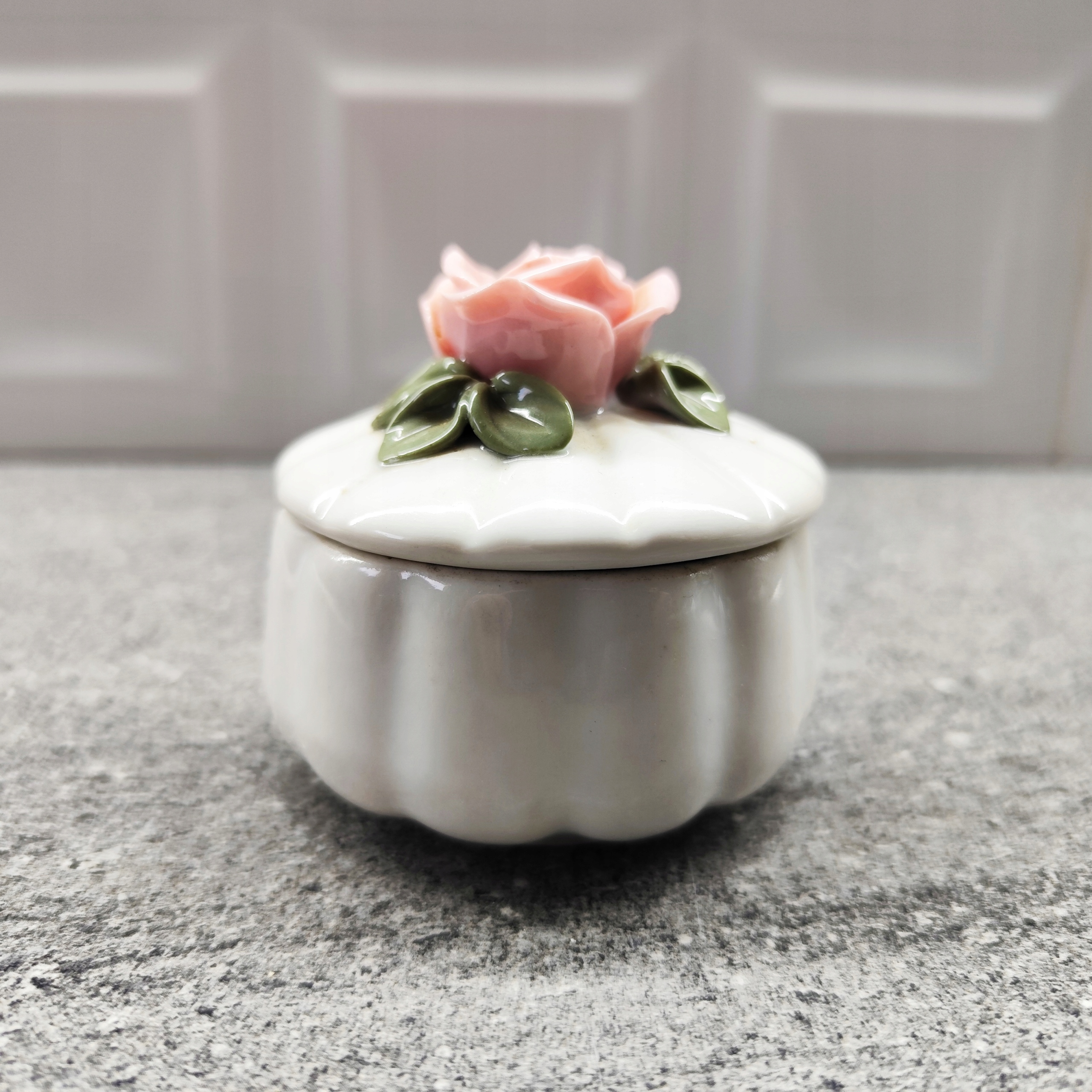 Круглая фарфоровая шкатулка с розой на крышке, старинная фарфоровая шкатулка.