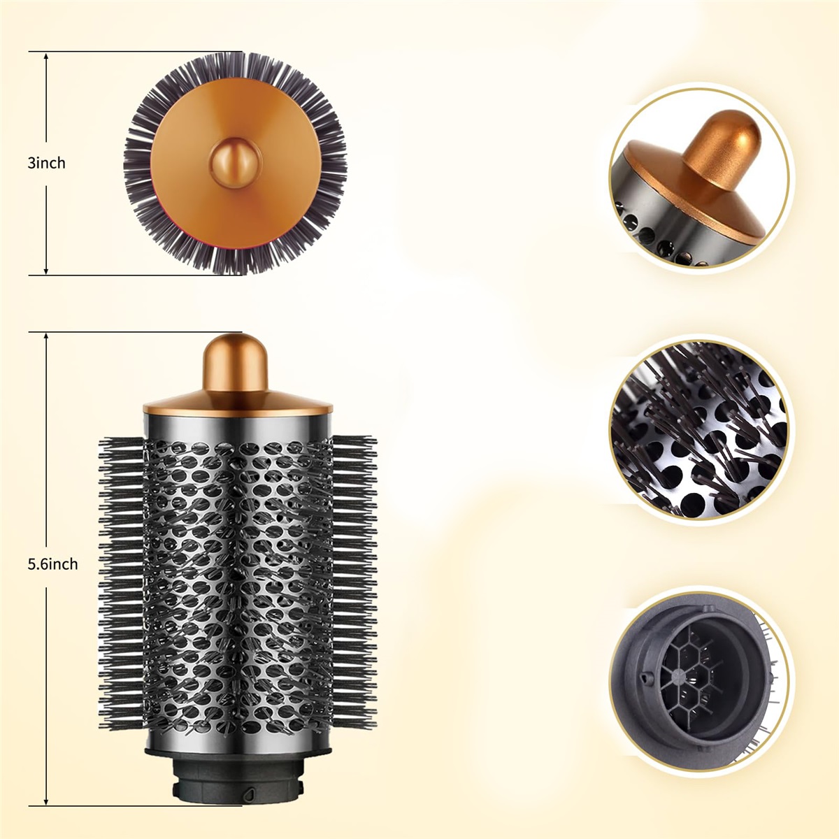 Круглая кисть +диффузорная насадка для Dyson Airwrap большой объем, золотой
