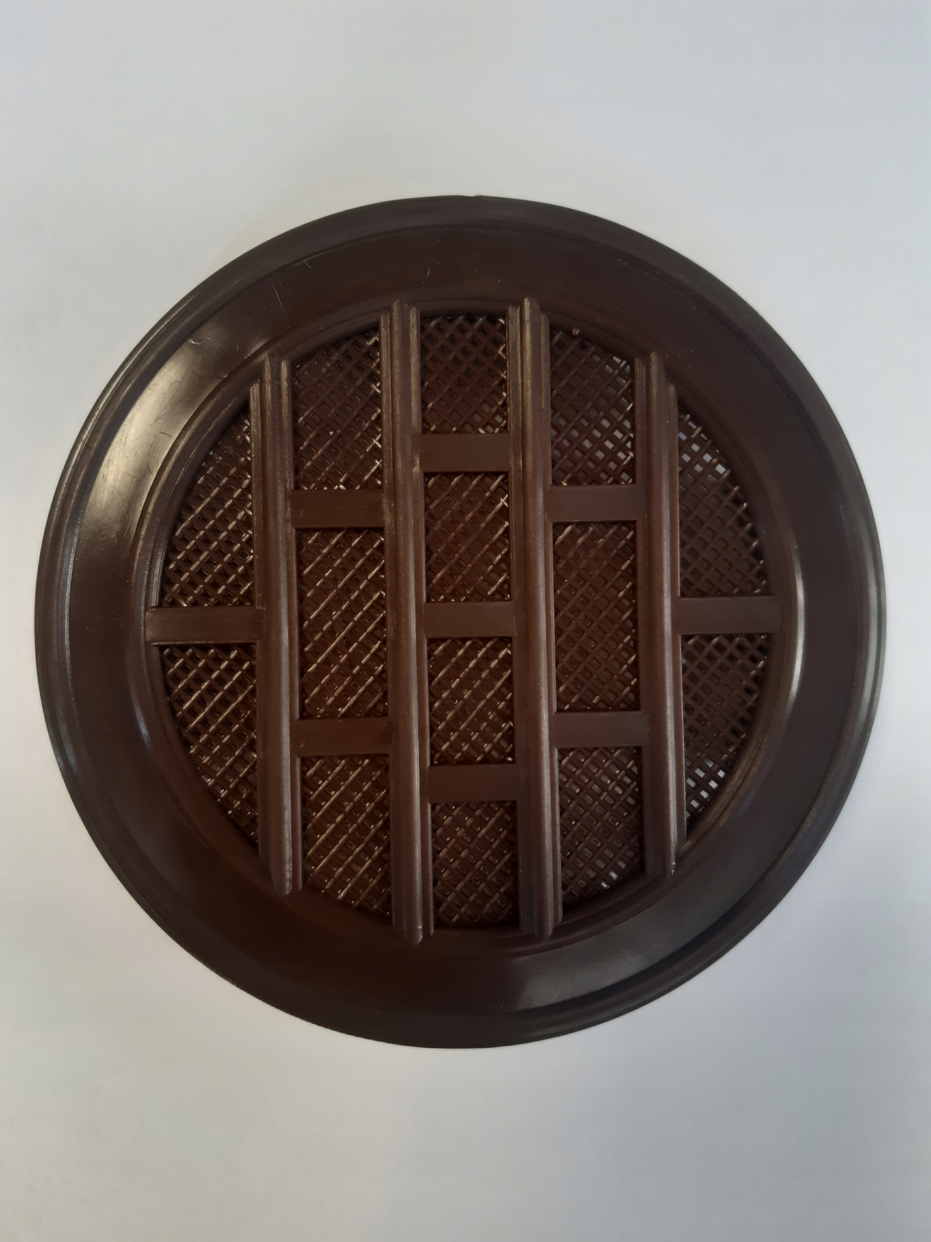КРУГЛАЯ ВЕНТИЛЯЦИОННАЯ РЕШЕТКА 100 ММ С КОРИЧНЕВОЙ СЕТКОЙ МАТЕРИАЛА
