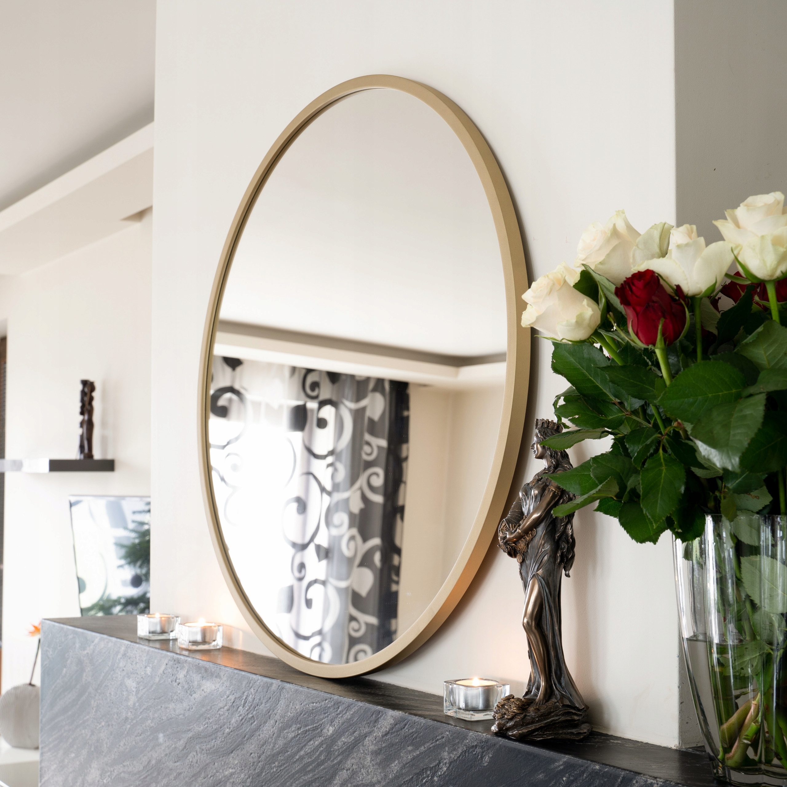 Если у вас есть интерьер в скандинавском, классическом стиле, чердаке, гламуре или минималистском круглом зеркале в золотом раме будет отличным выбором. Круглая форма делает его успокаивающим сильным характером комнаты или подчеркивает спокойствие в ней.