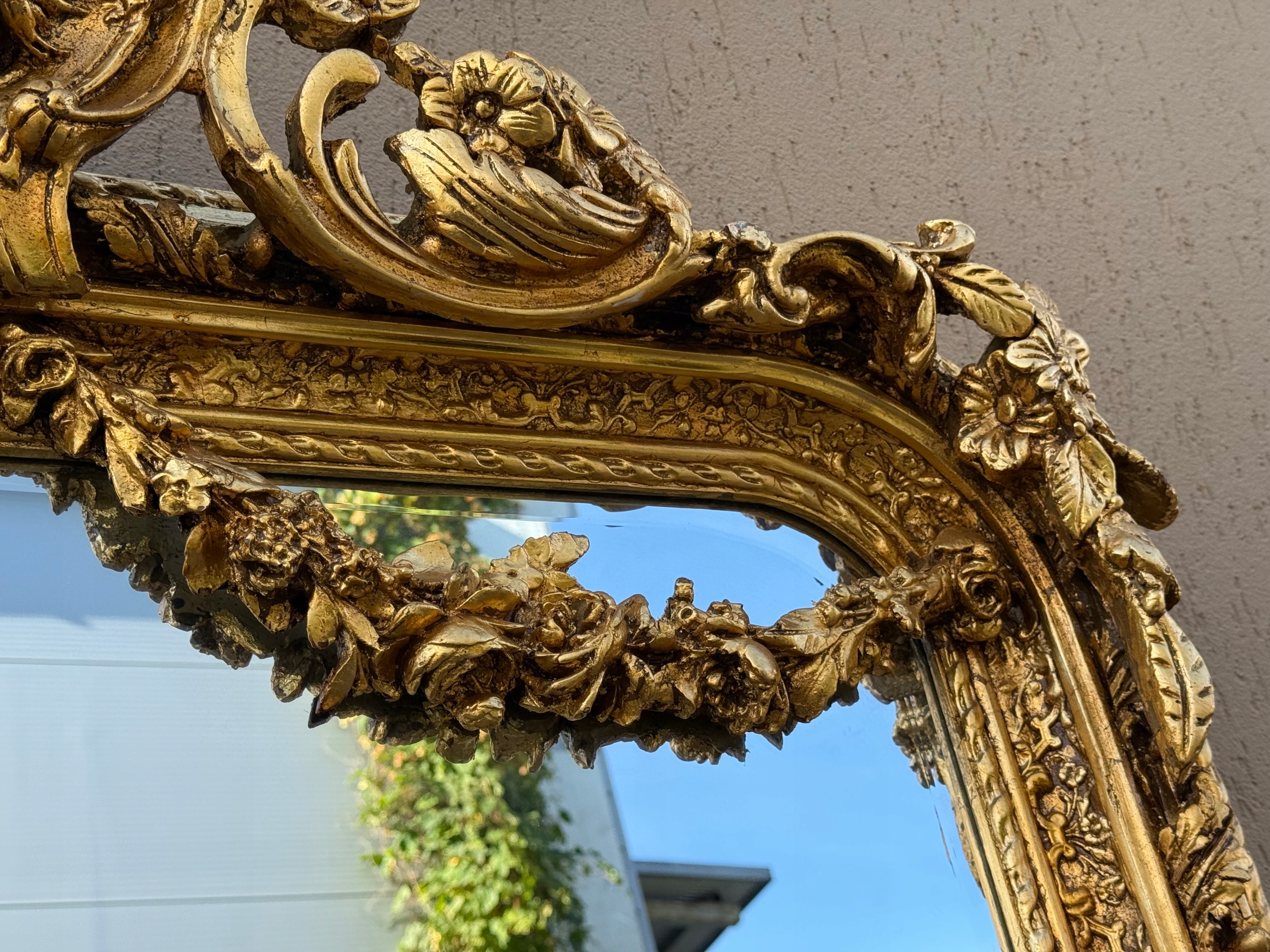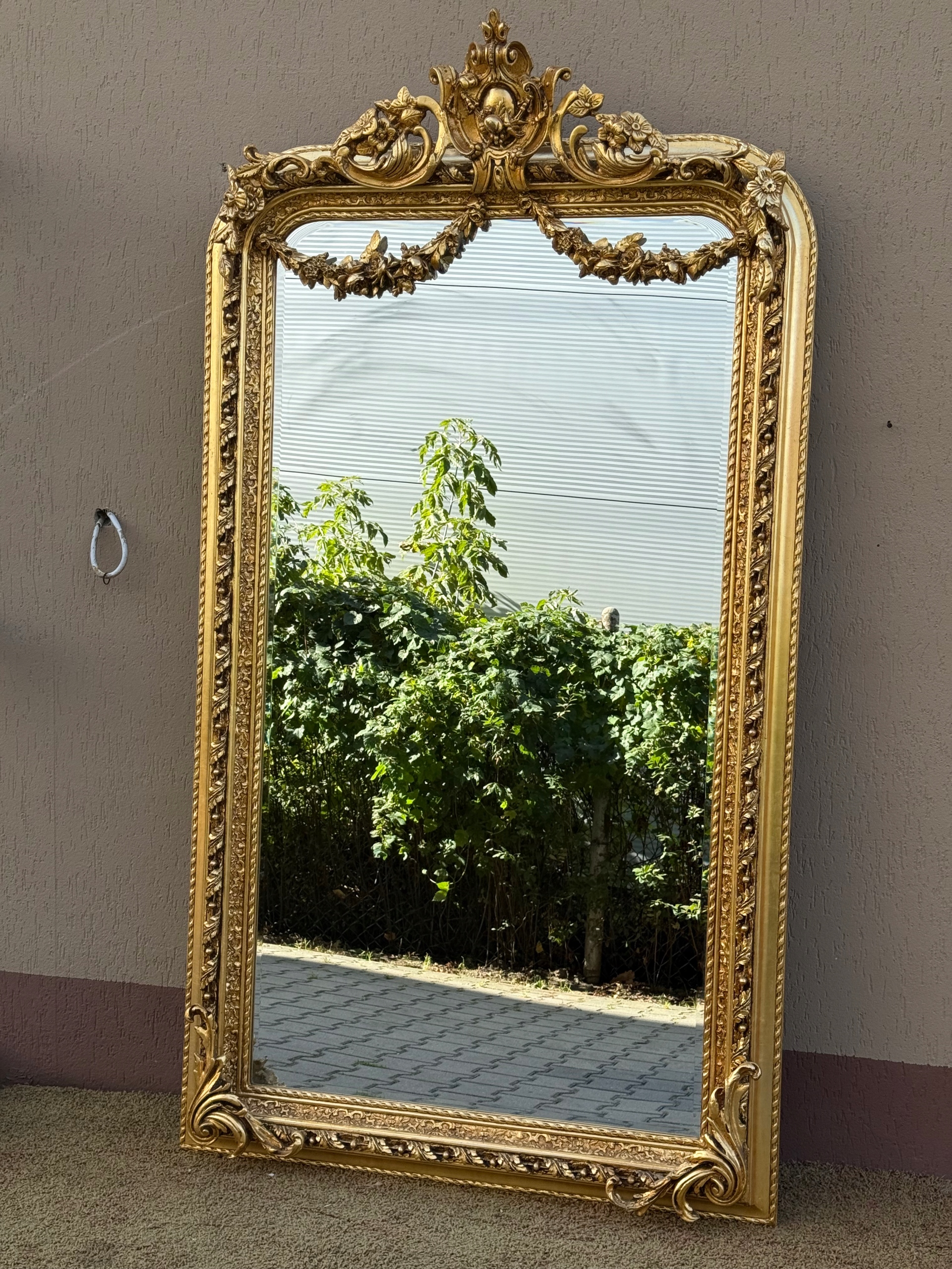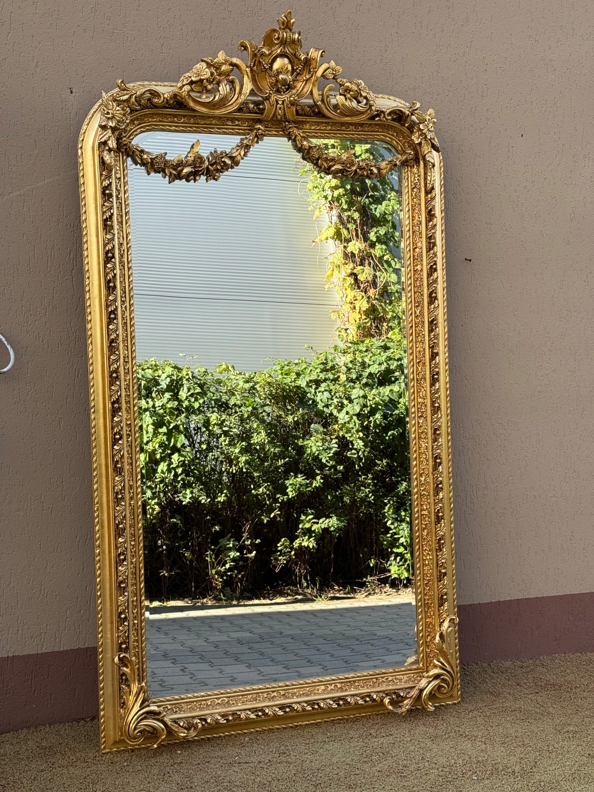 ЗЕРКАЛО В ЗОЛОТОЙ РАМКЕ С ДЕКОРАТИВНОЙ КОРОНОЙ И ГИРЛАНДАМИ