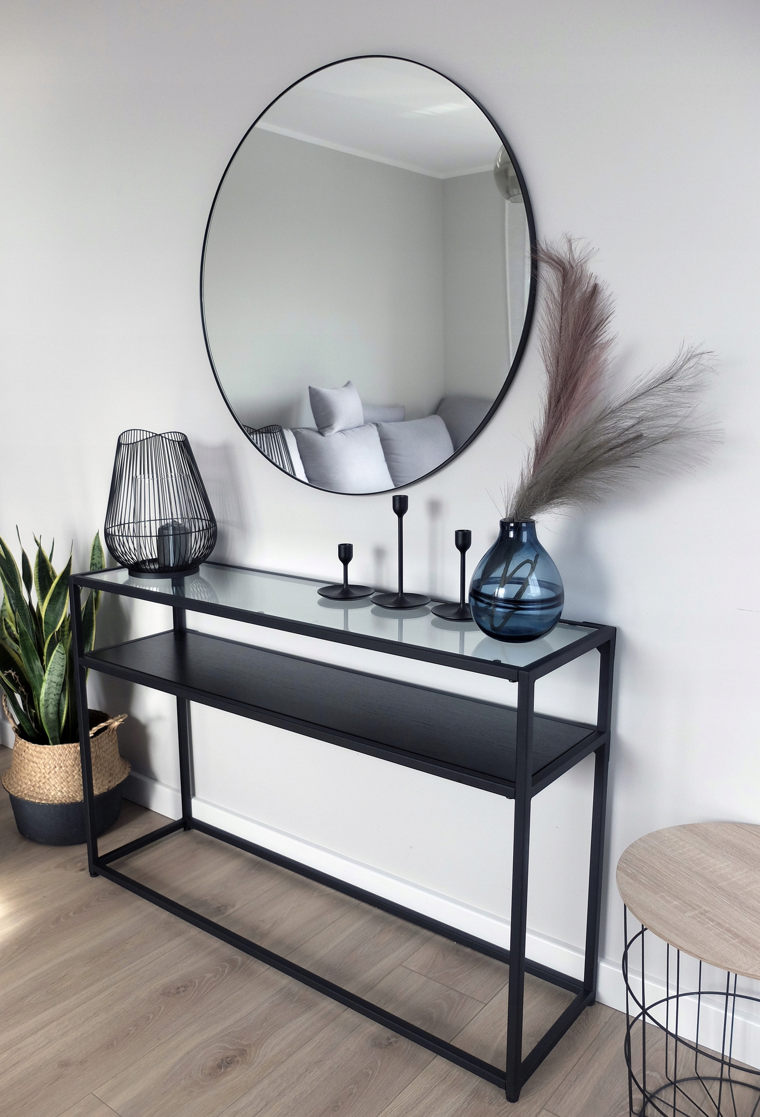 КРУГЛОЕ ЗЕРКАЛО В ЧЁРНОЙ МЕТАЛЛИЧЕСКОЙ РАМКЕ выполнено из высококачественных материалов.