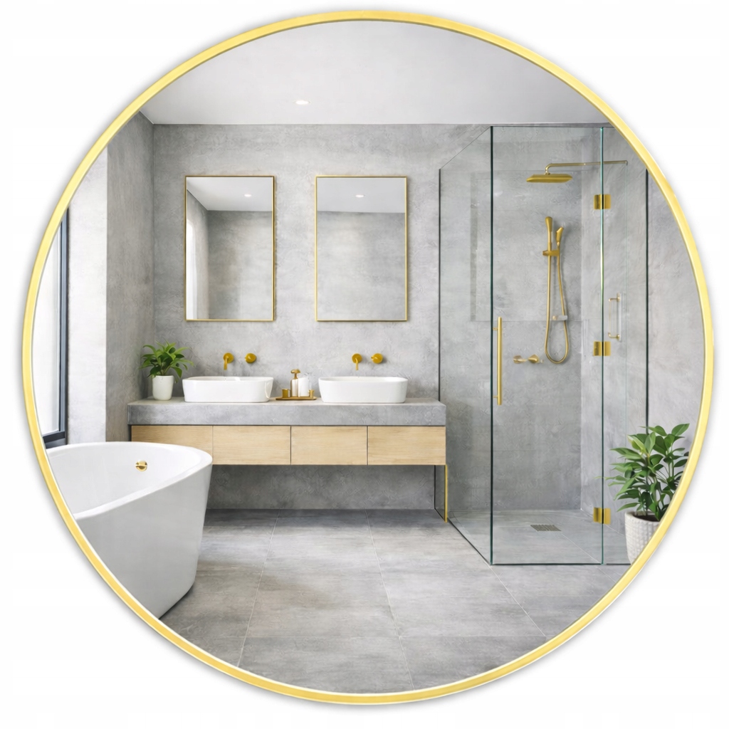 Зеркало 50 см в металлической раме золотого цвета – лофтовый акцент в интерьере