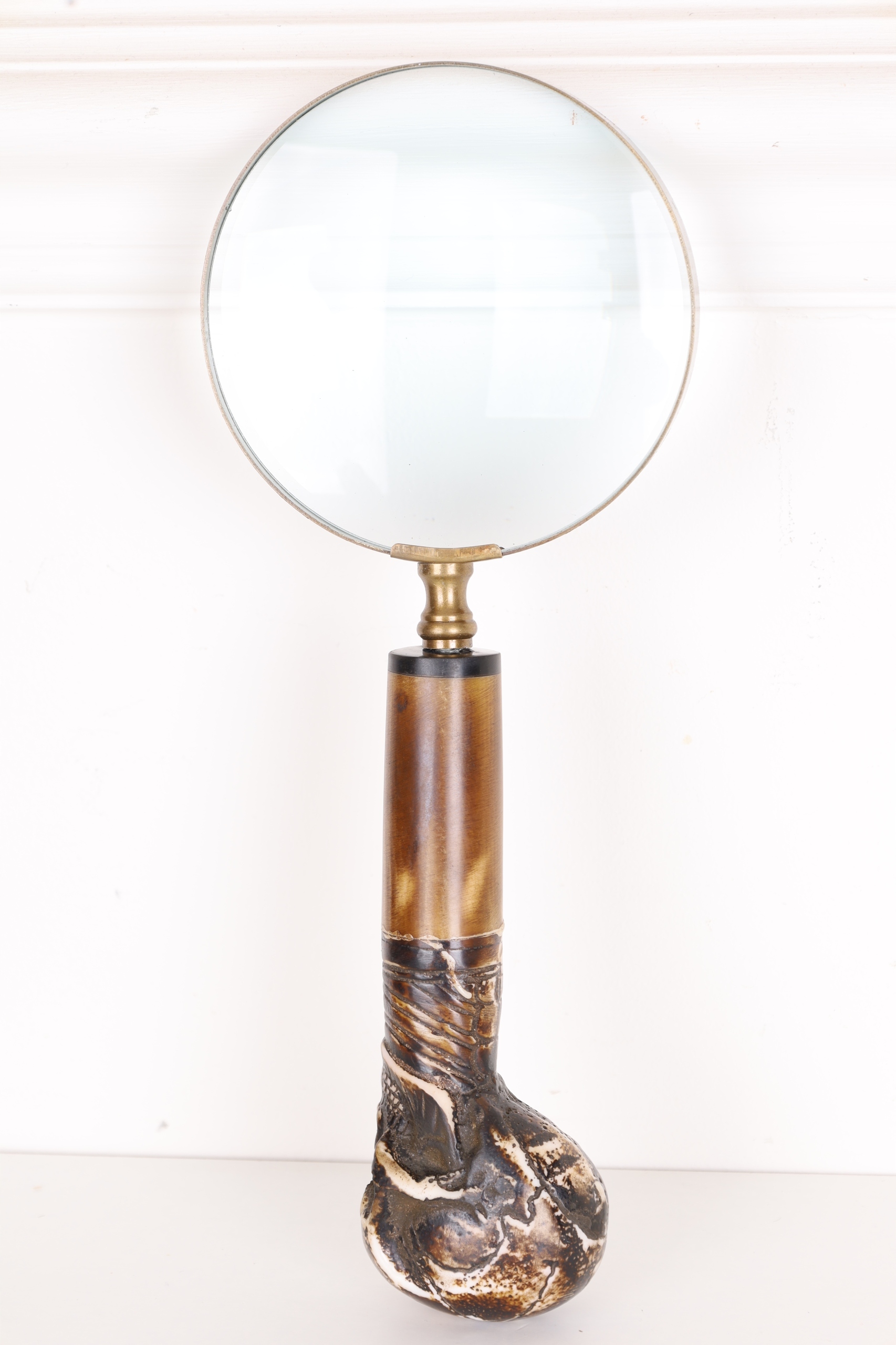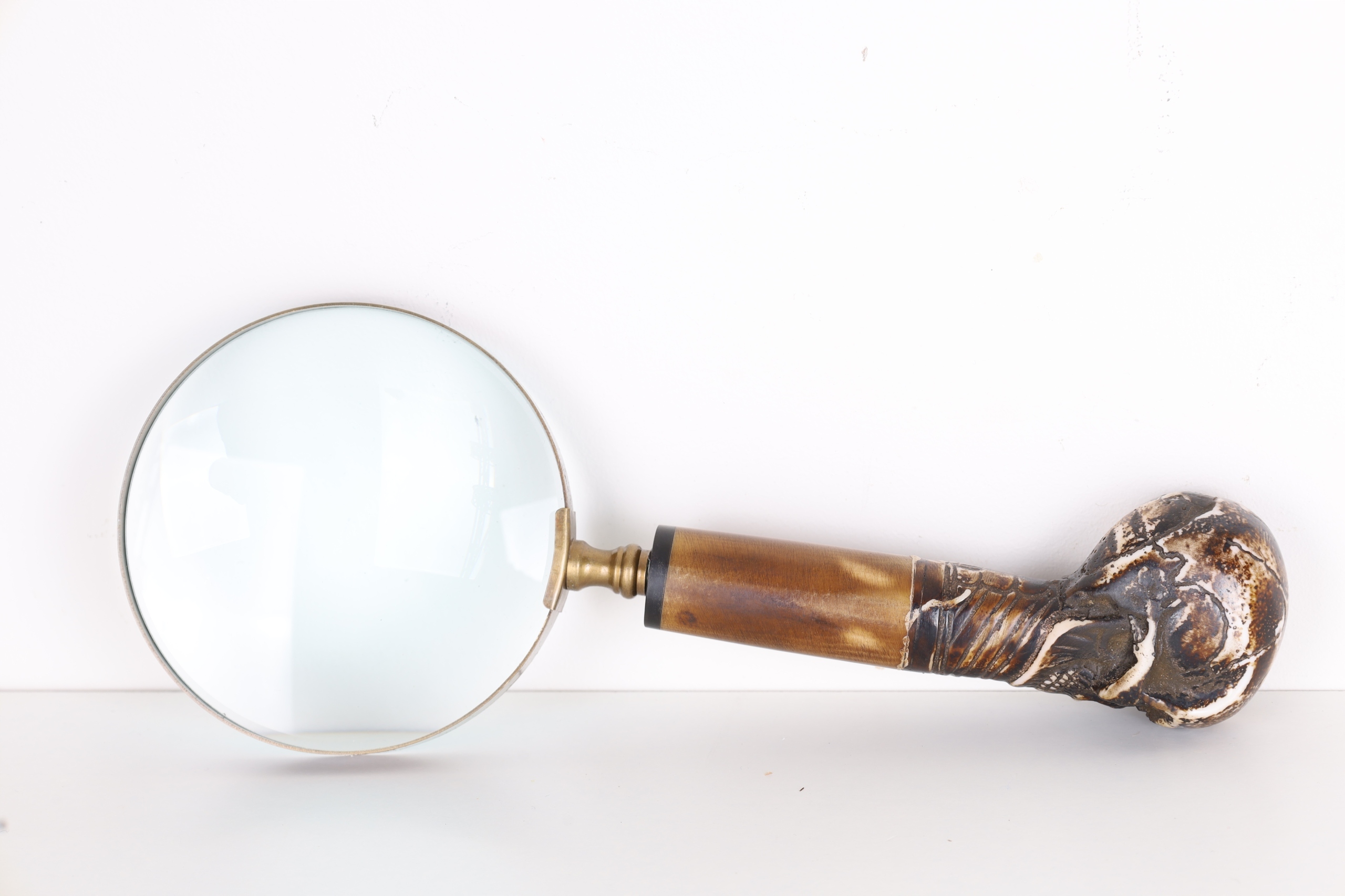 Круглое серебро увеличительное стекло, увеличивая череп