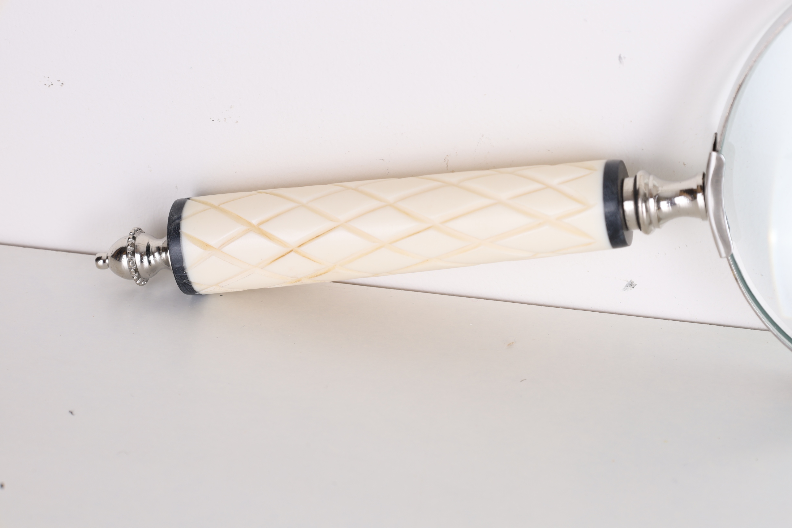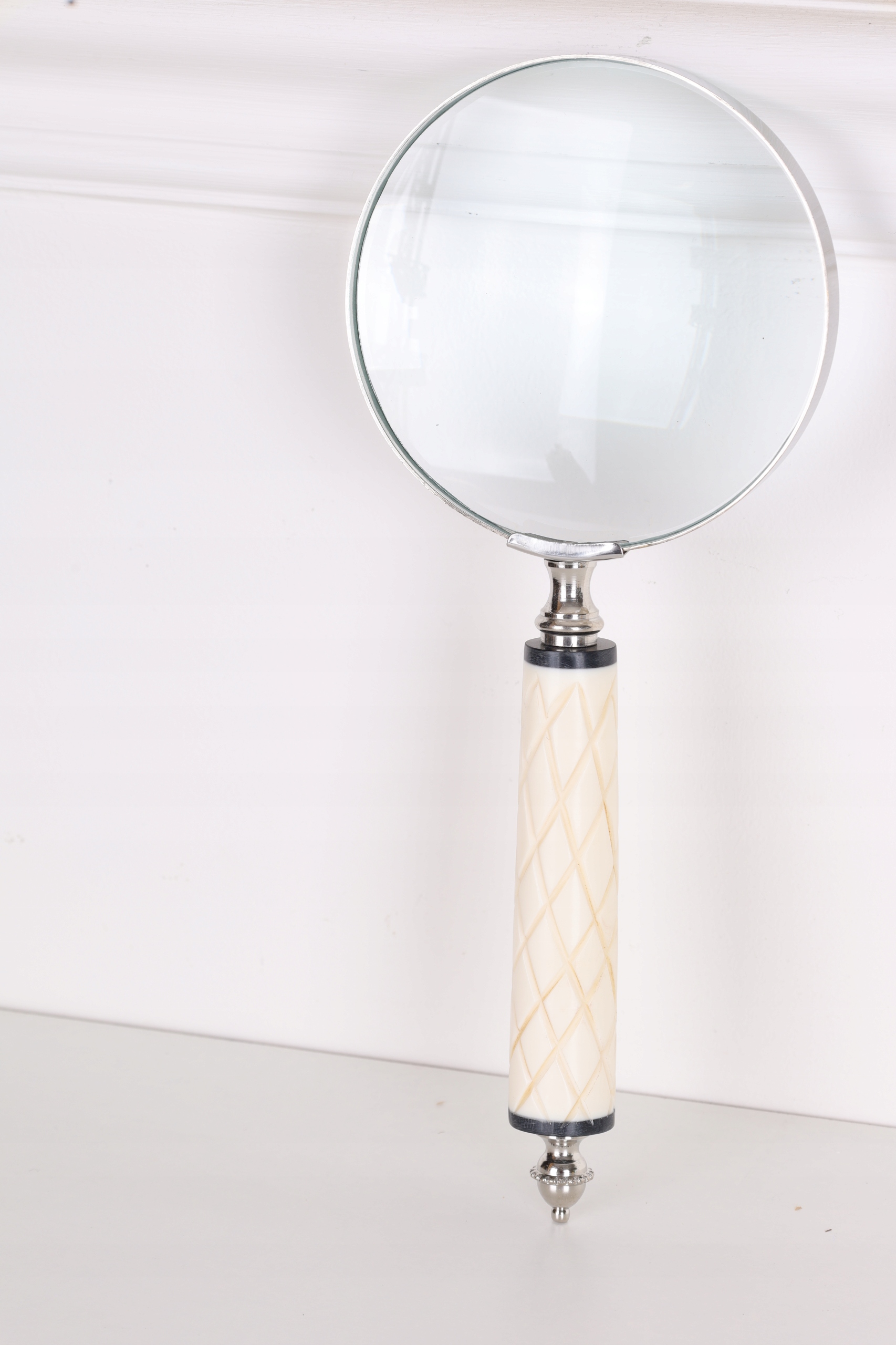 Круглый серебряный увеличивающий стекло, увеличивающее белое