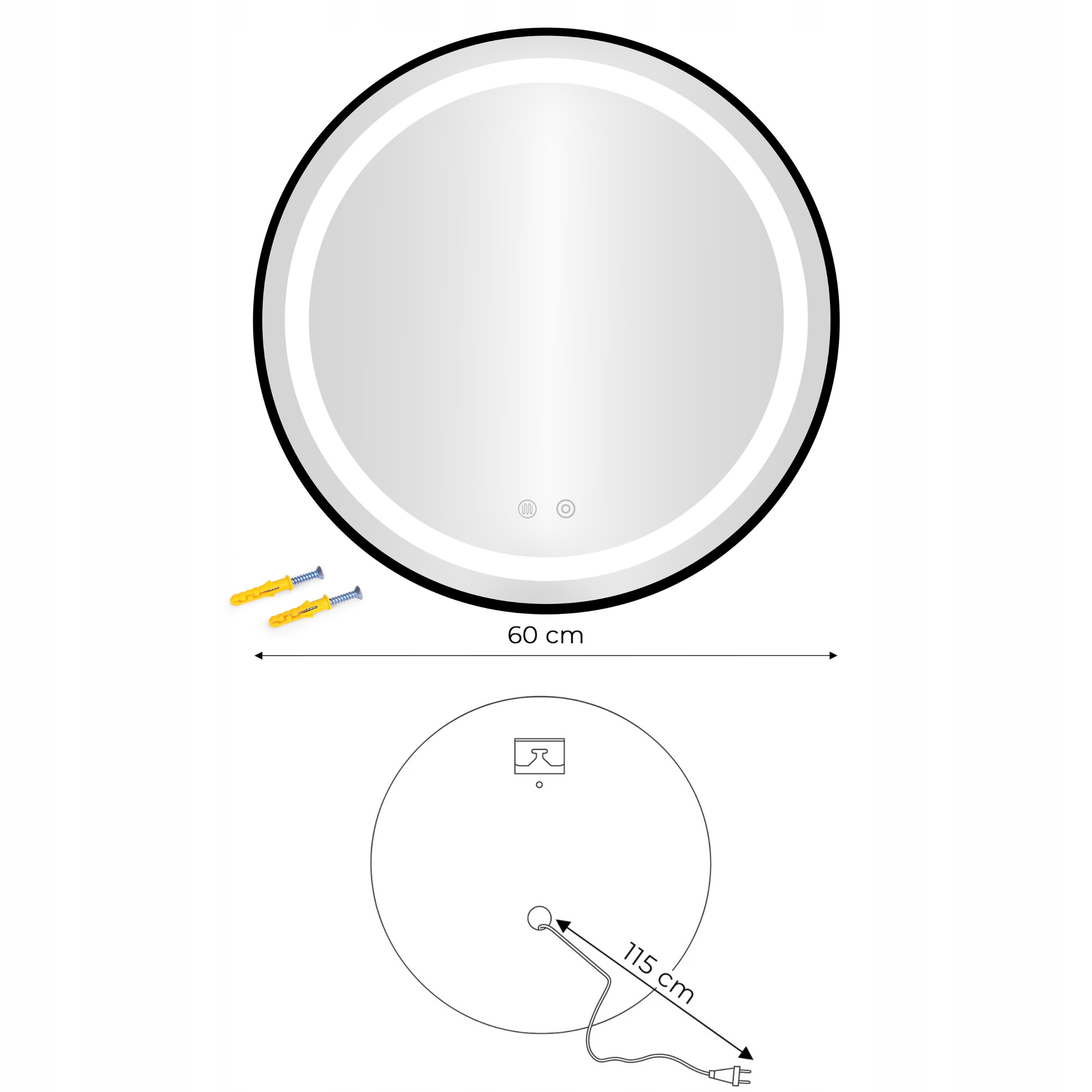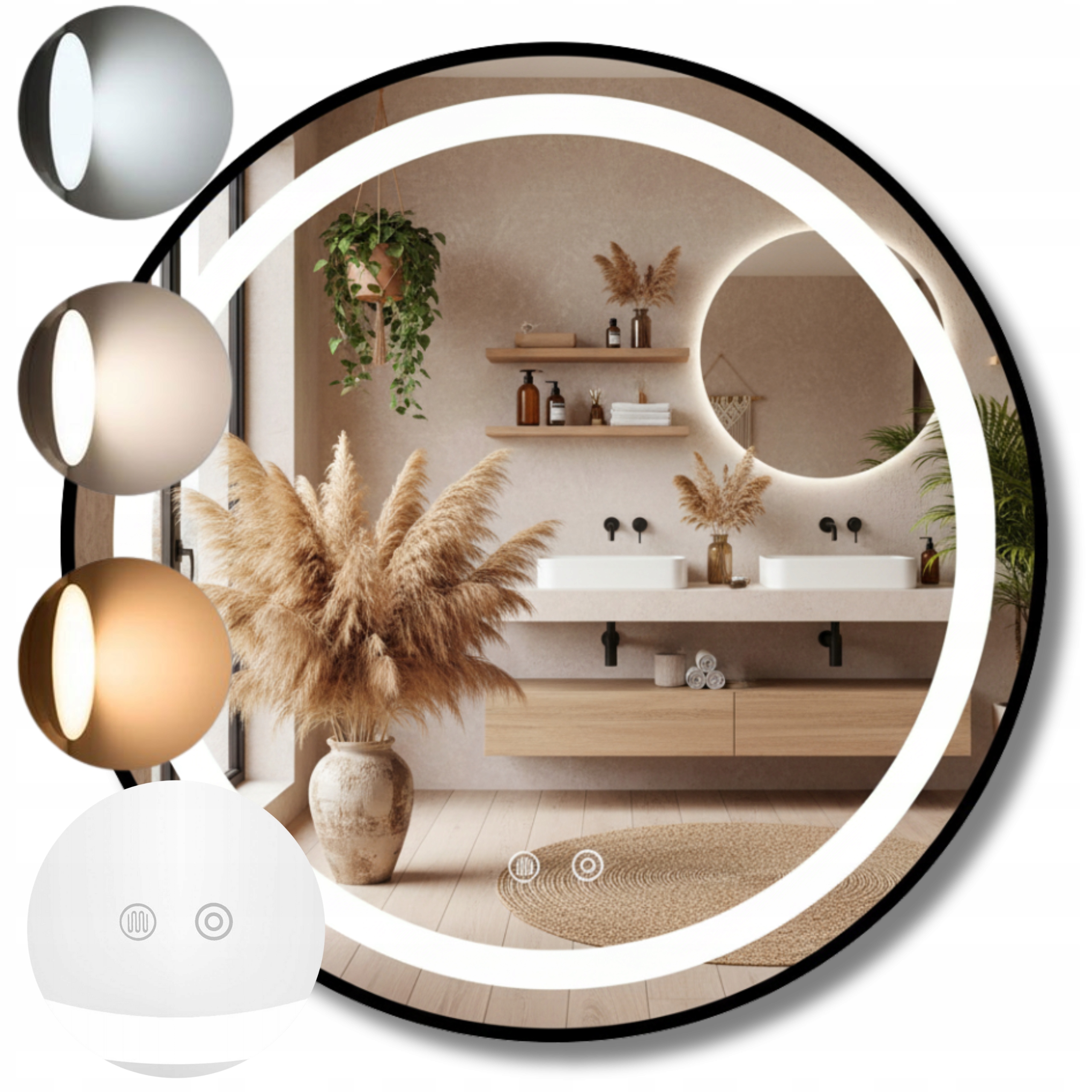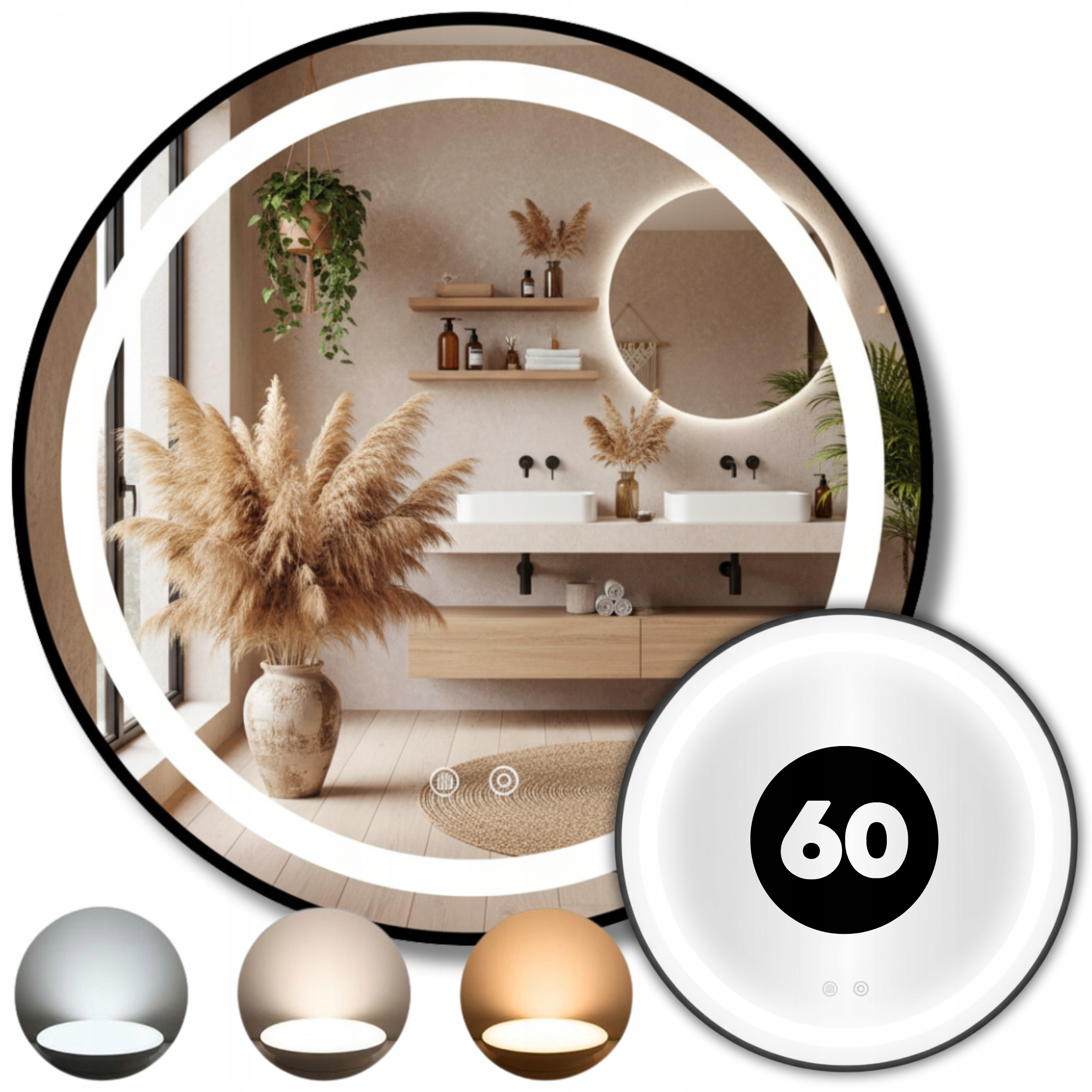 ЗЕРКАЛО ДЛЯ ВАННОЙ 60 СМ, КРУГЛОЕ, С СЕНСОРНОЙ ПОДСВЕТКОЙ, 3 ЦВЕТА, ЧЕРНАЯ АЛЮМИНИЕВАЯ РАМА
