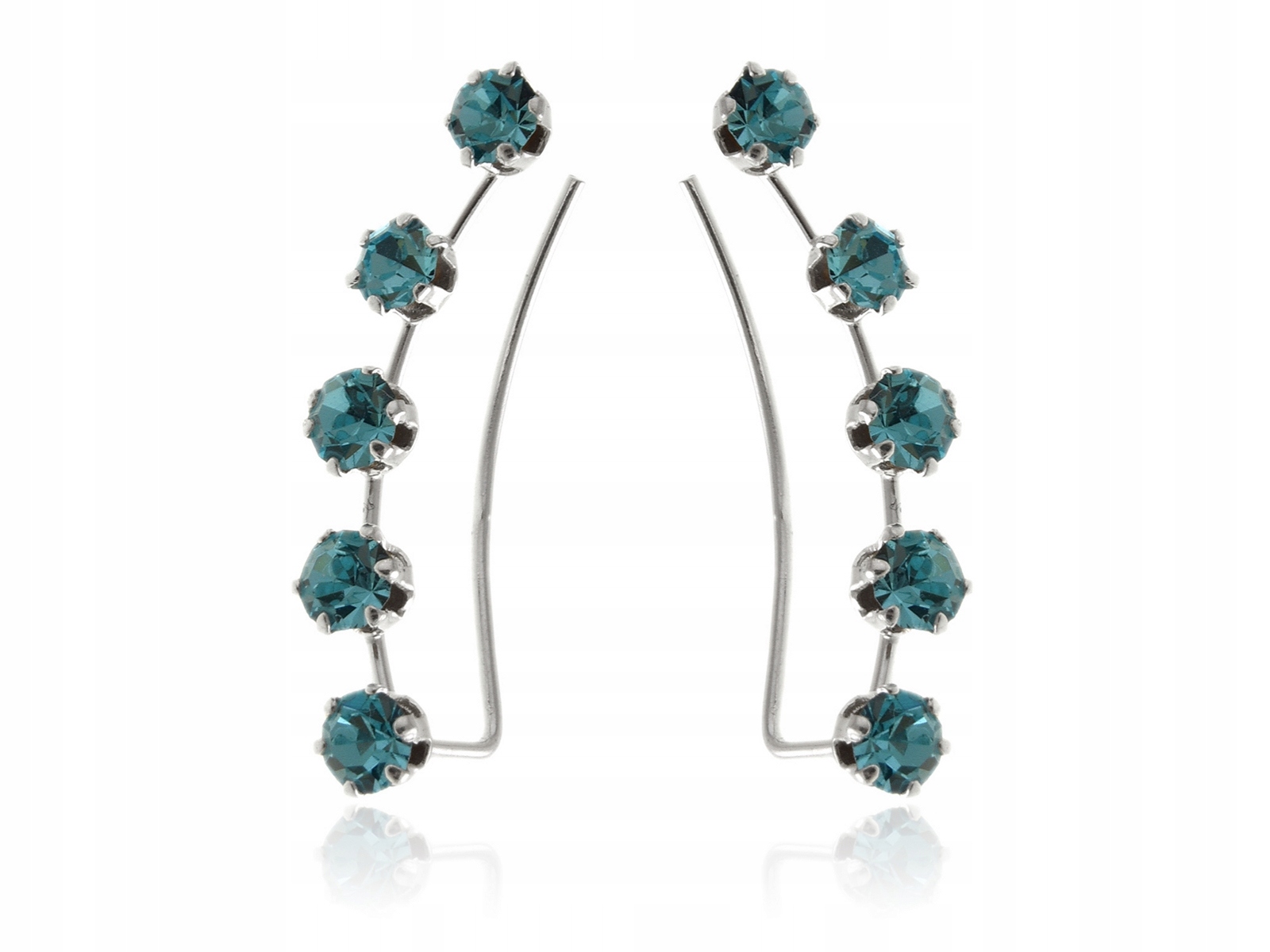 Каффы для ушей из серебра 925 пробы украшены синими кристаллами, которые красиво сверкают на свету. Чтобы их надеть, нужна дырка в ухе. Провод, идущий за ухом, тонкий и гибкий, поэтому хорошо вписывается в ухо.