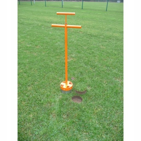 Резак следует вставить в газон, затем вытащить и вытолкнуть отрезанный кусок с помощью специально приспособленной для этой цели ручки, а затем тем же методом вставить новый фрагмент. Благодаря этому мы можем быстро и легко устранить повреждения, нанесенные газону.