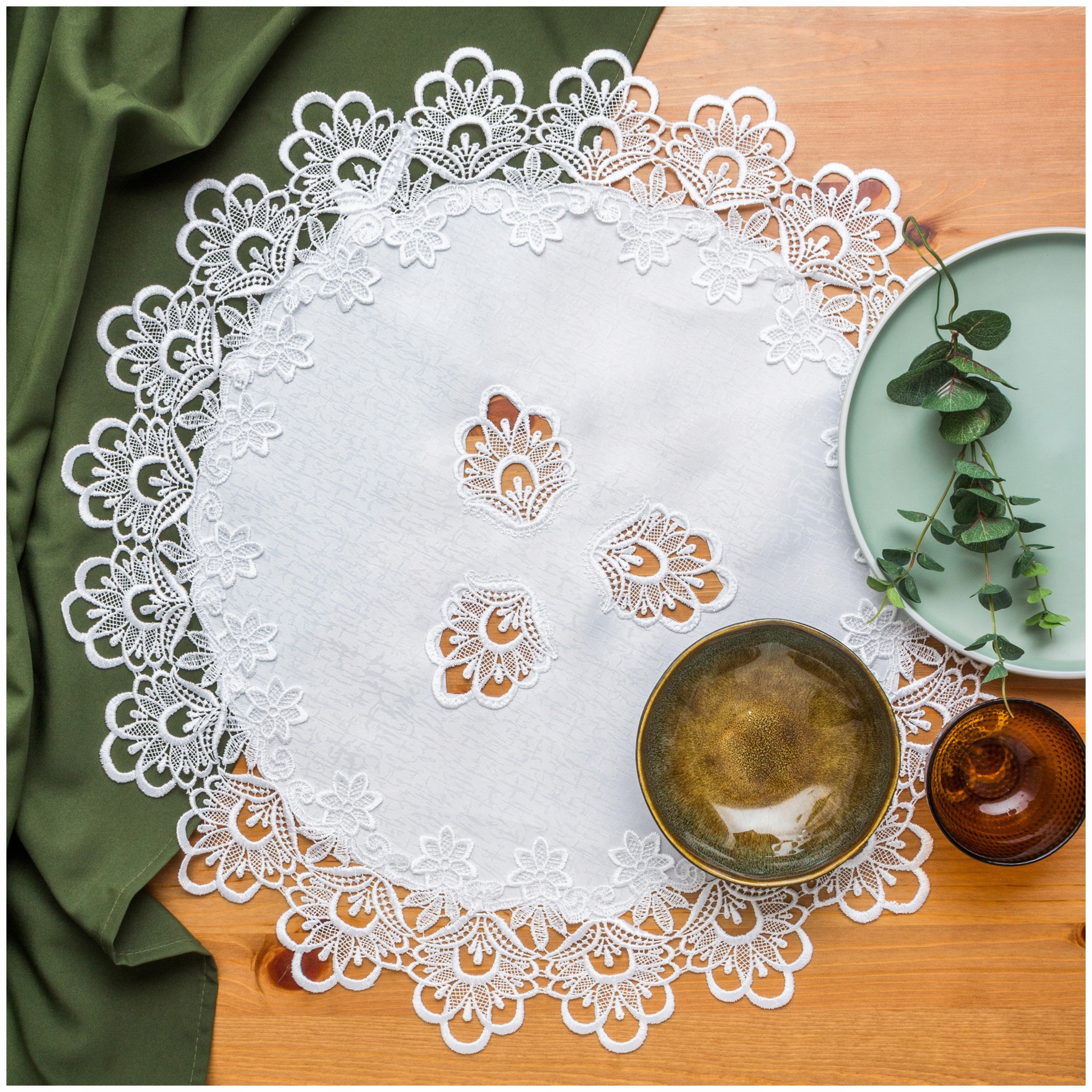 Круглая гиптурная салфетка 60x60 см белый кружев