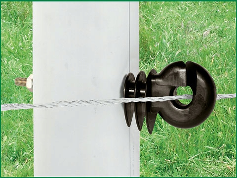 Изолятор электрозабора с метрической резьбой. Обычно используется для электрических заборов, установленных в существующих заборах, столбы которых изготовлены из стальных профилей или труб. Идеально подходит для использования в постоянных заборах. В комплект входят две гайки для крепления изолятора в листовой металл или плоские стержни без необходимости резьбы в отверстиях. Однако зачастую наиболее практичным способом установки изолятора является нарезание резьбы с помощью стандартных металлических метчиков М6. Изготовлен из пластика, обеспечивающего высокие изоляционные параметры. Штифт круглого изолятора позволяет безопасно расположить провода электропастуха. Резьба длиной 18 см позволяет перемещать его на необходимое расстояние от столбов или сетки забора. Это позволит избежать риска соприкосновения электроизгороди с элементами сетки.