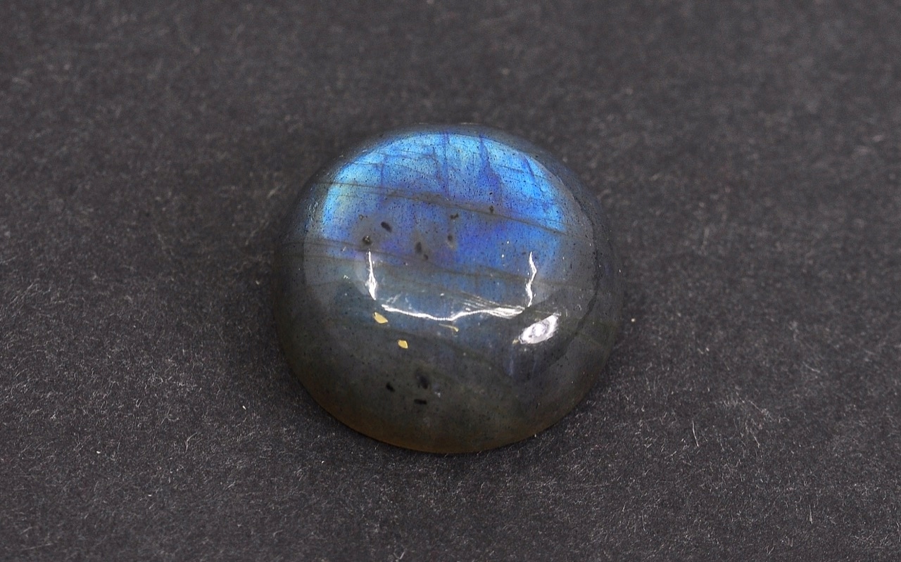 Образец лабрадора — природного камня формы кабошон для изготовления оригинальных украшений.